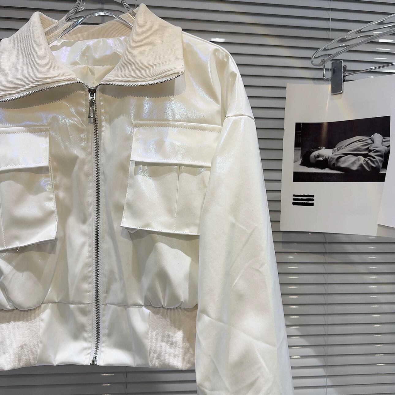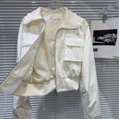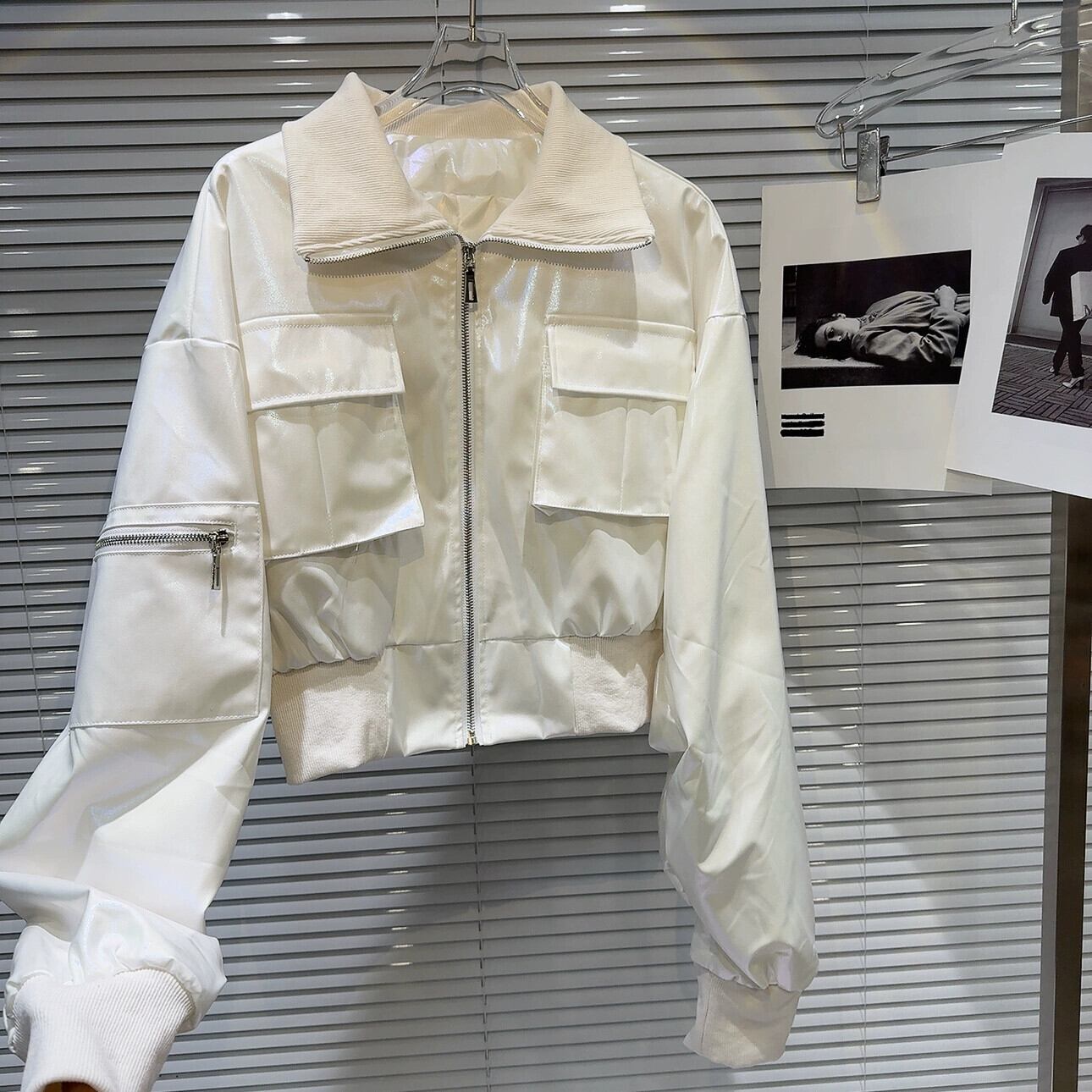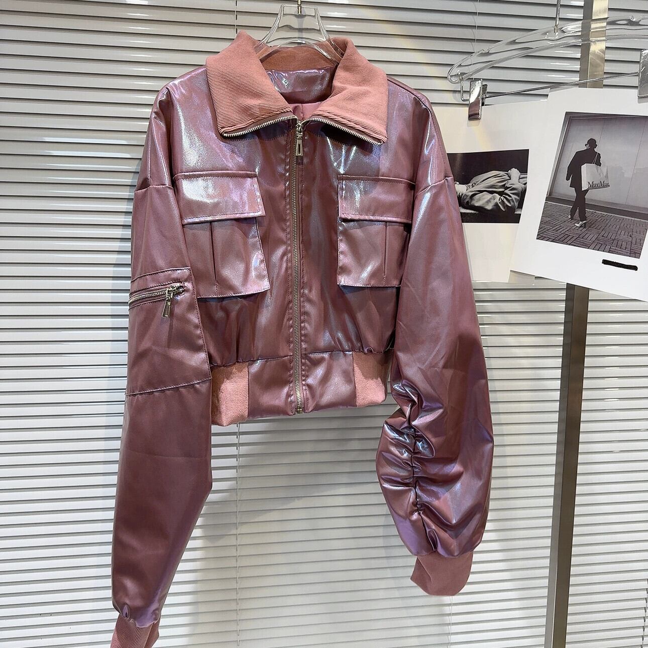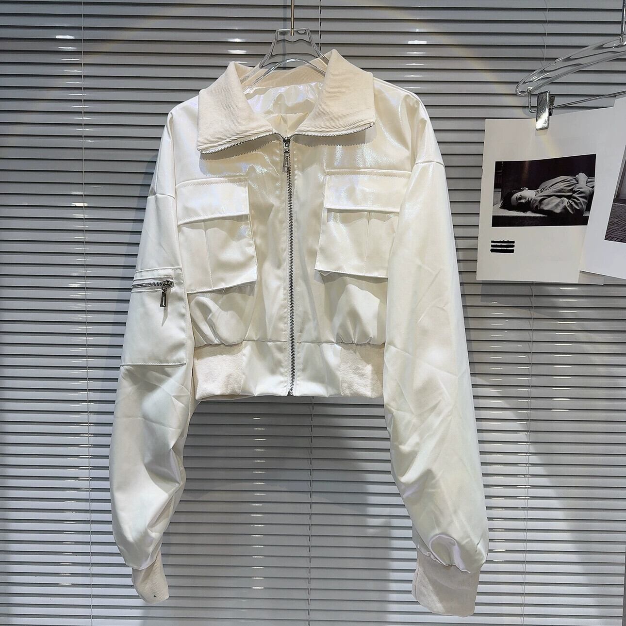 インターネット有名人の同じスタイル2024春の新しいストリート光沢のあるグラデーションカラースレッドワークポケットショートコートジャケット スプリング 春物 gyan3348794998841 | vestitialla