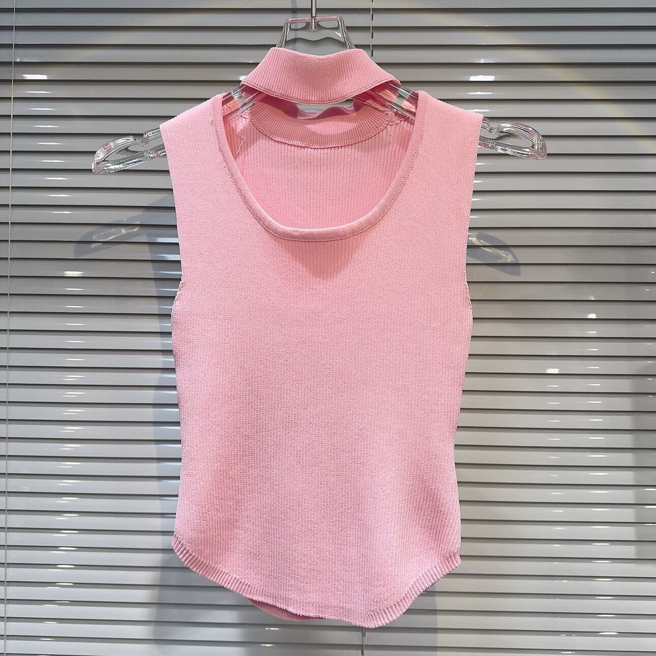 ネット有名人の同じスタイル 2024 夏の新しいスタイル小さな香りのスタイルホルターネック U 字襟キャンディーカラースリムニットキャミソール女性 サマー 夏物 gyan3399778817359 | vestitialla