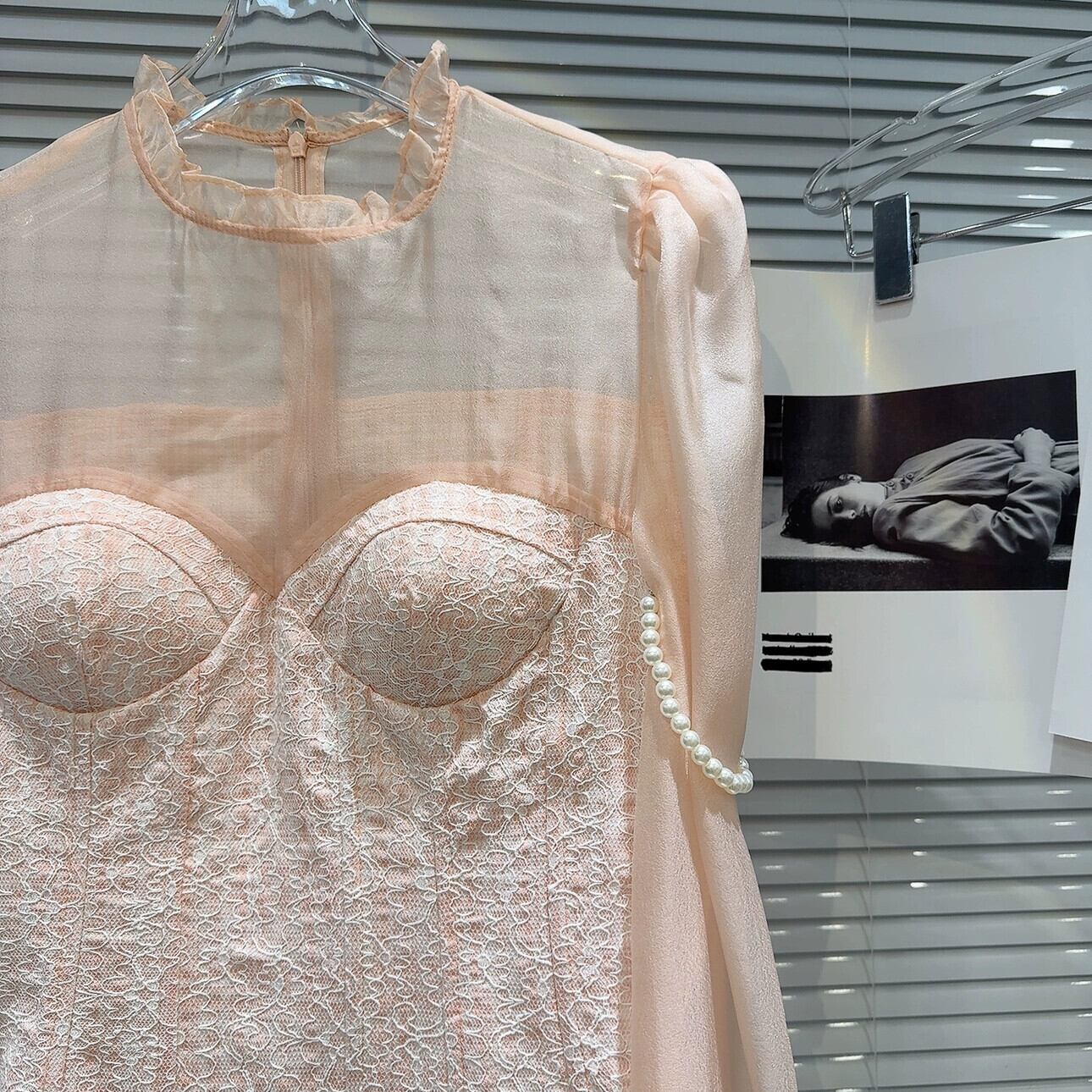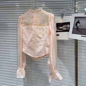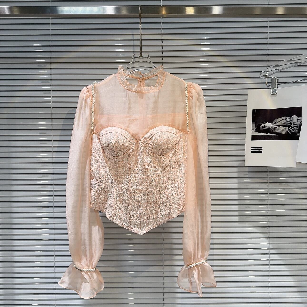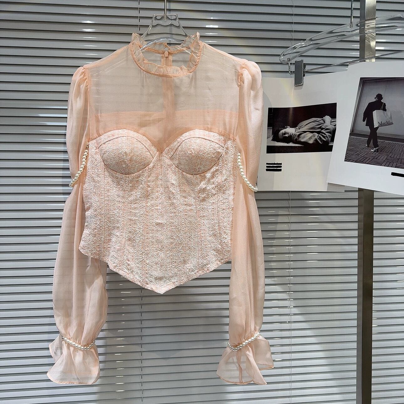 インターネット有名人同じスタイル 2024 春の新フレンチスタイル小さな香りパールショルダーストラップメッシュスプライシング胸パッドシャツシャツ女性 スプリング 春物 真珠 gyan3380552442921 | vestitialla