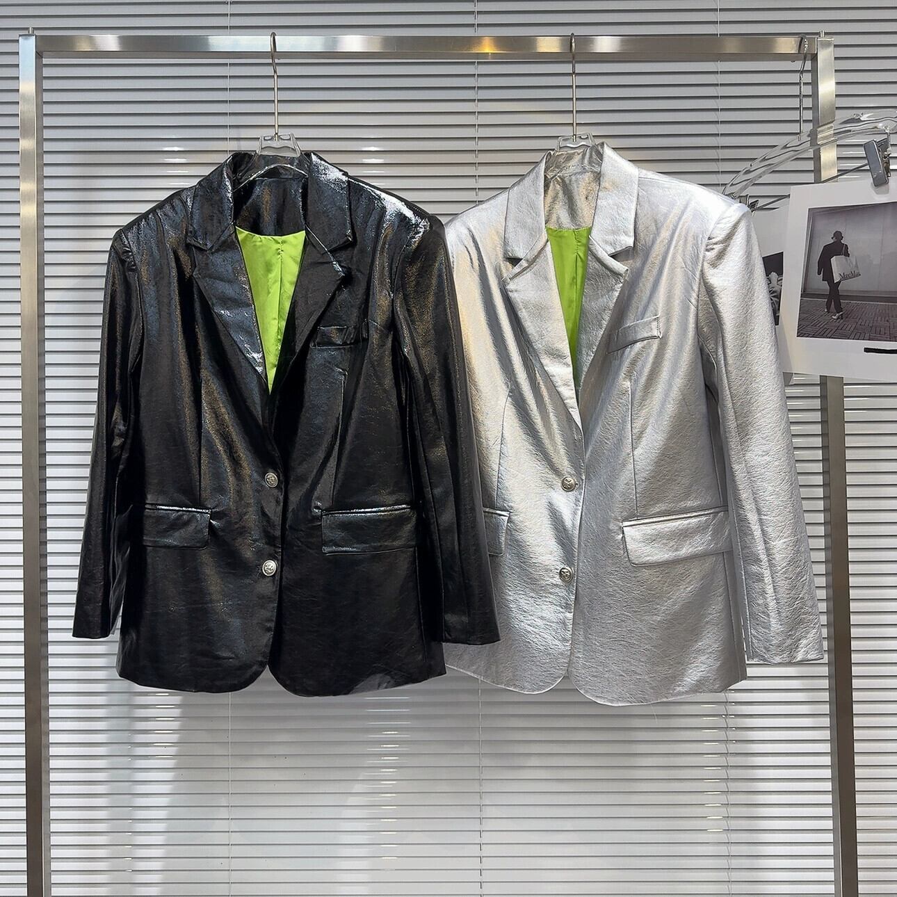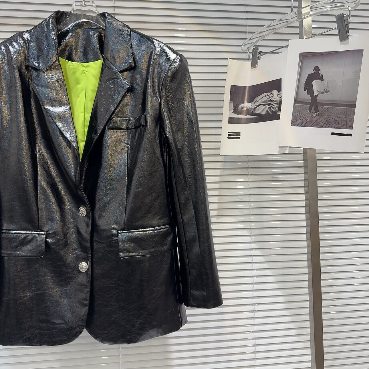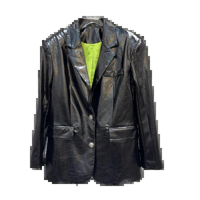 インターネット有名人の同じスタイル2024春の新しいニッチ光沢のあるパテントレザーストリートショルダーパッドルーズスーツスーツジャケット スプリング 春物 gyan3363523994915 | vestitialla
