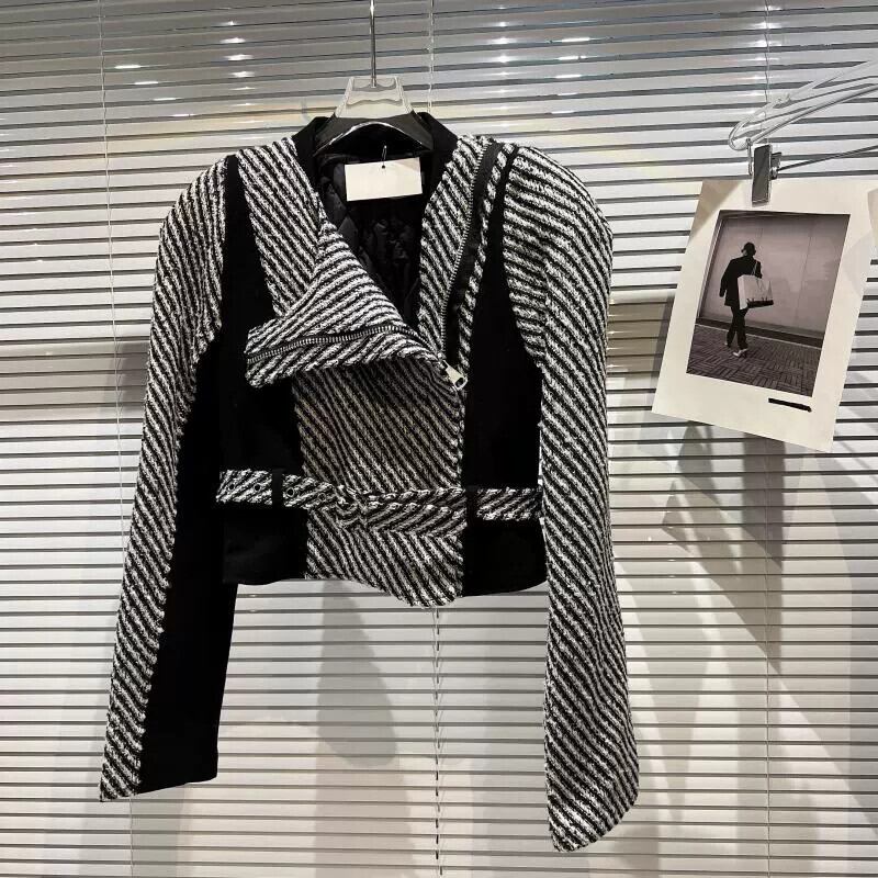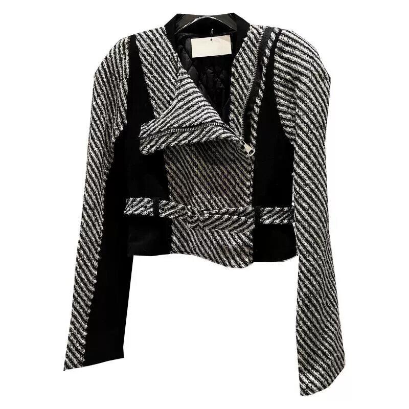 ネット有名人同様2024春新作ニッチモデル斜めジッパーストライプベルトウールインナー肥厚スーツショートジャケット スプリング 春物 ハーネス gyan3348056411507 | vestitialla
