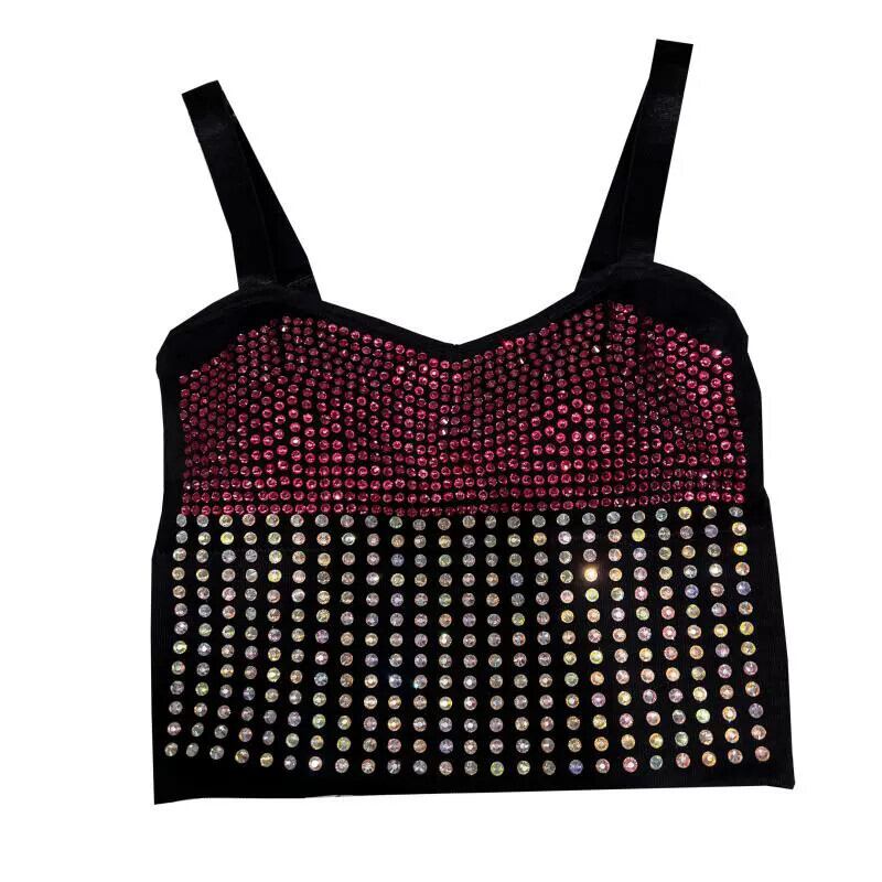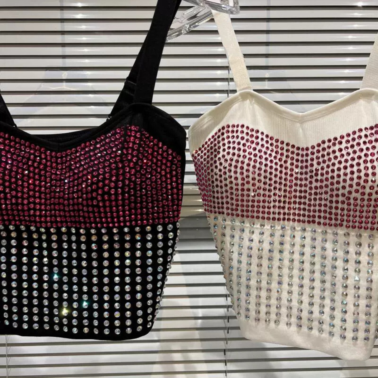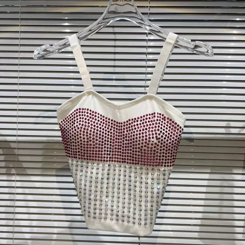 ネット有名人の同じスタイル 2024 春の新スタイルの小さな香り全身粒子ラインストーンダイヤモンドデザイン胸パッドキャミソール女性 スプリング 春物 gyan3323676813838 | vestitialla