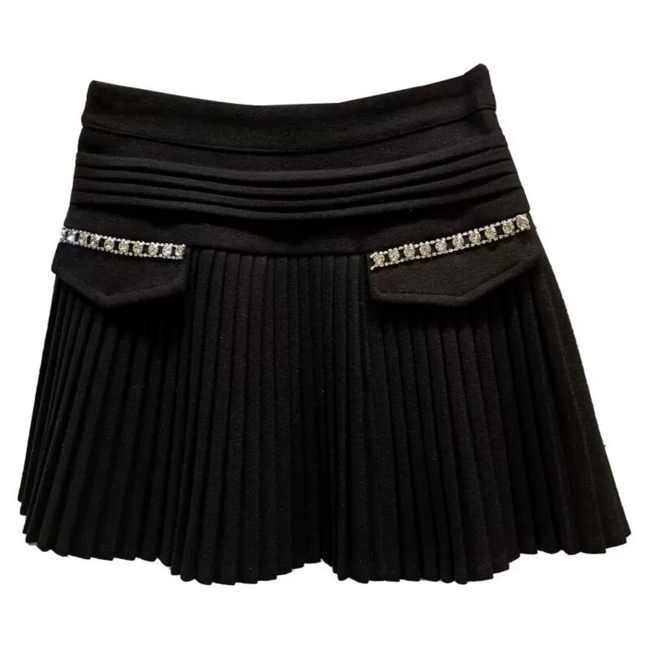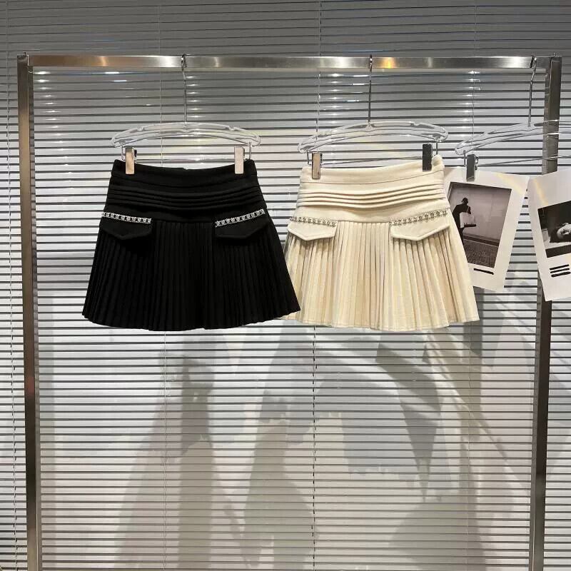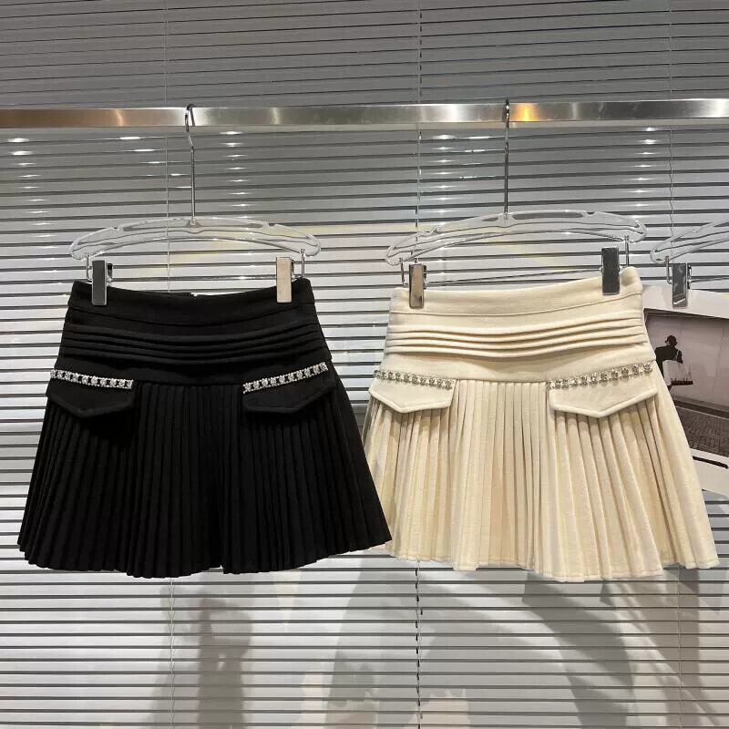 インターネットセレブと同じスタイル 2024 春の新スタイル小祥風水ダイヤモンドストリップダブルポケットウールスカートプリーツスカート A ラインスカート スプリング 春物 Aライン gyan3333378472200 | vestitialla