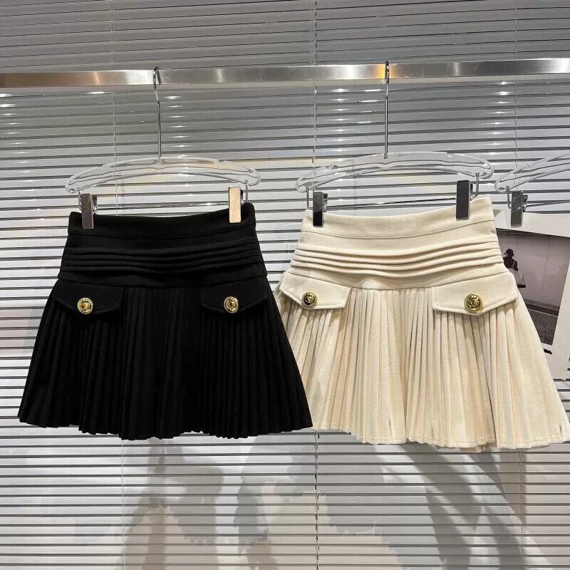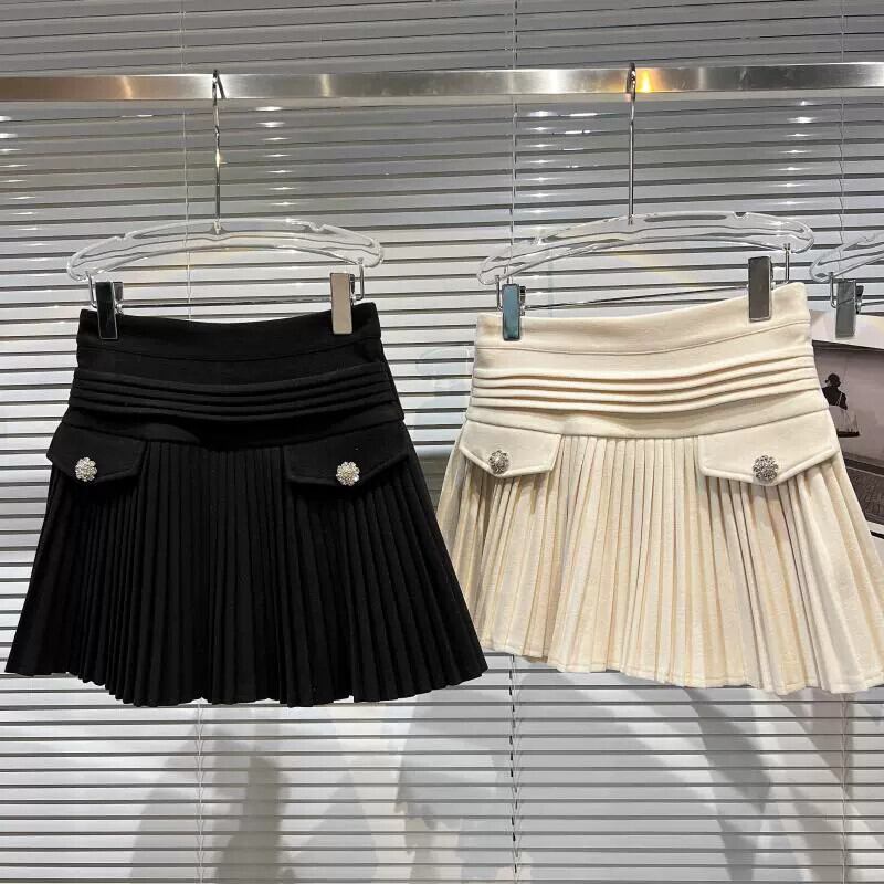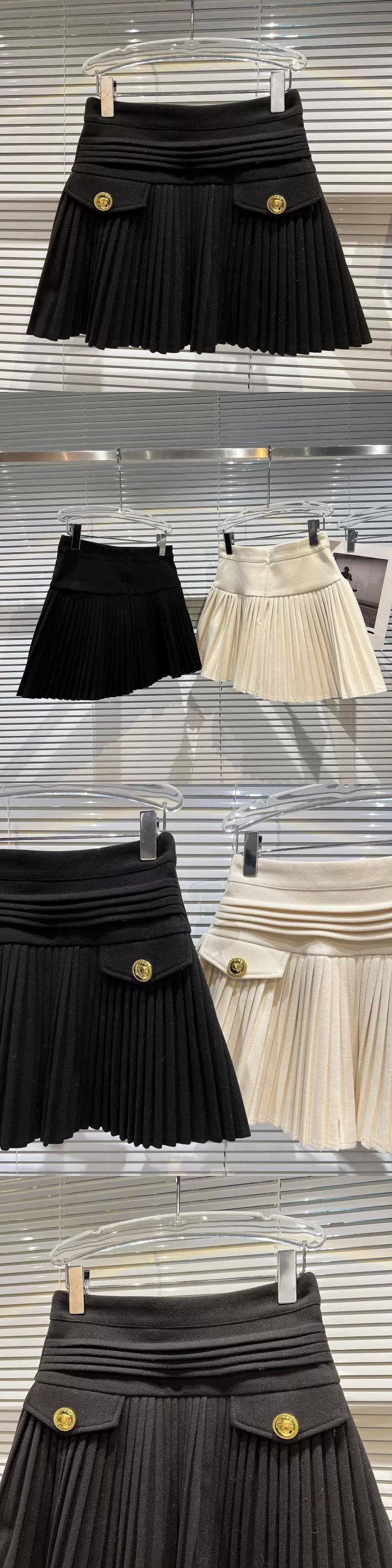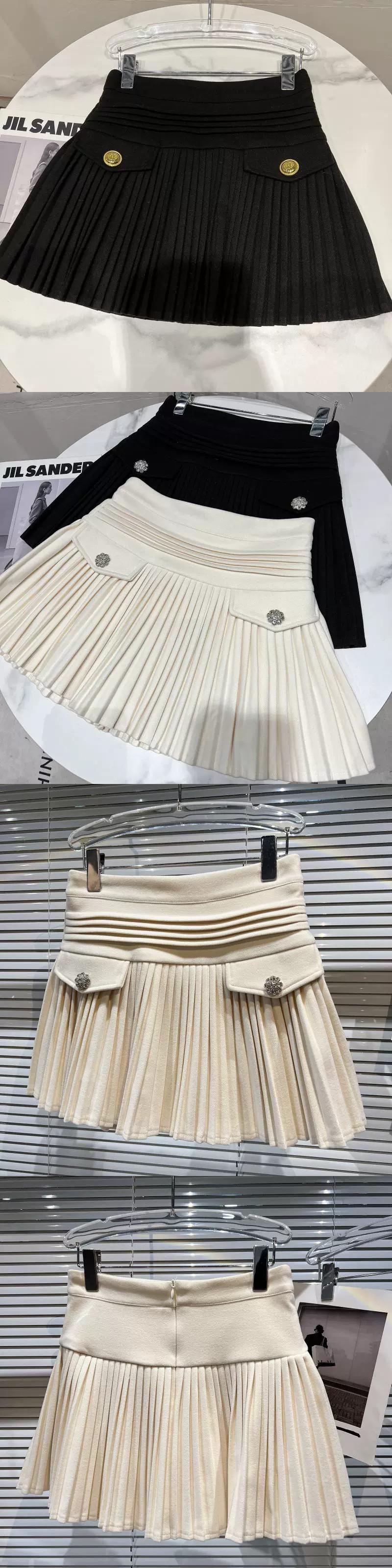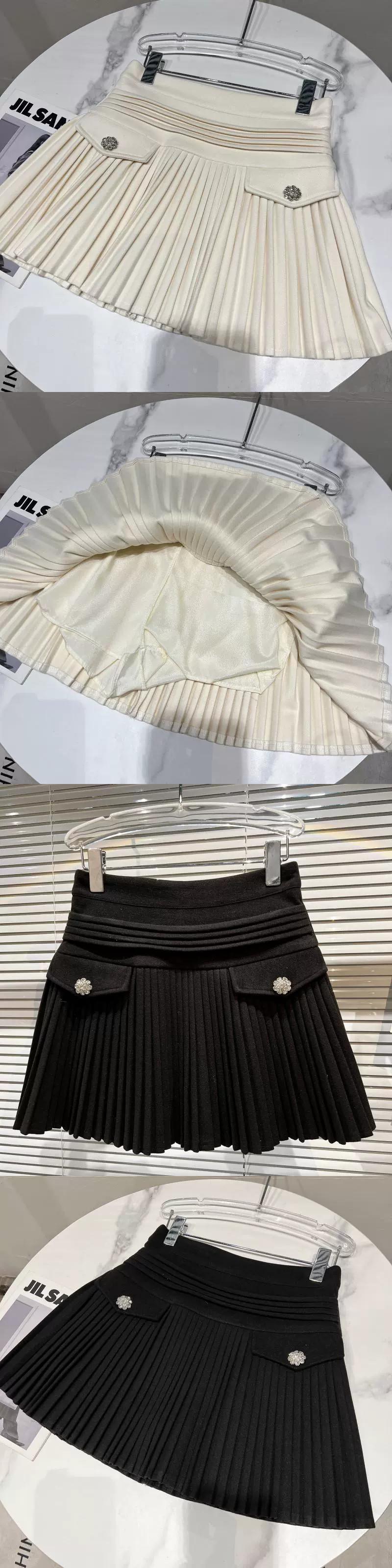 インターネット有名人同じスタイル 2024 春の新レトロ小さな香りのよいスタイル金属バックルダブルポケットウールプリーツスカートスカート女性 スプリング 春物 gyan3343154227225 | vestitialla