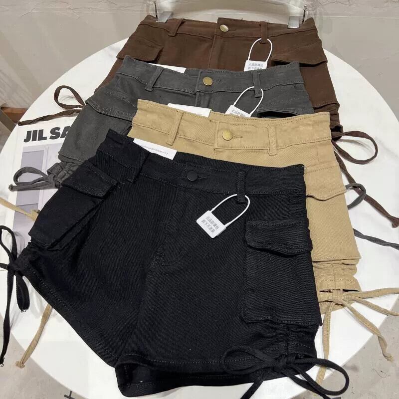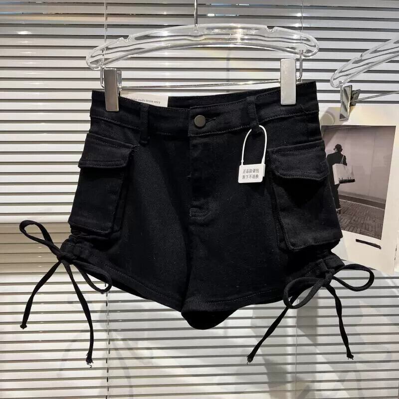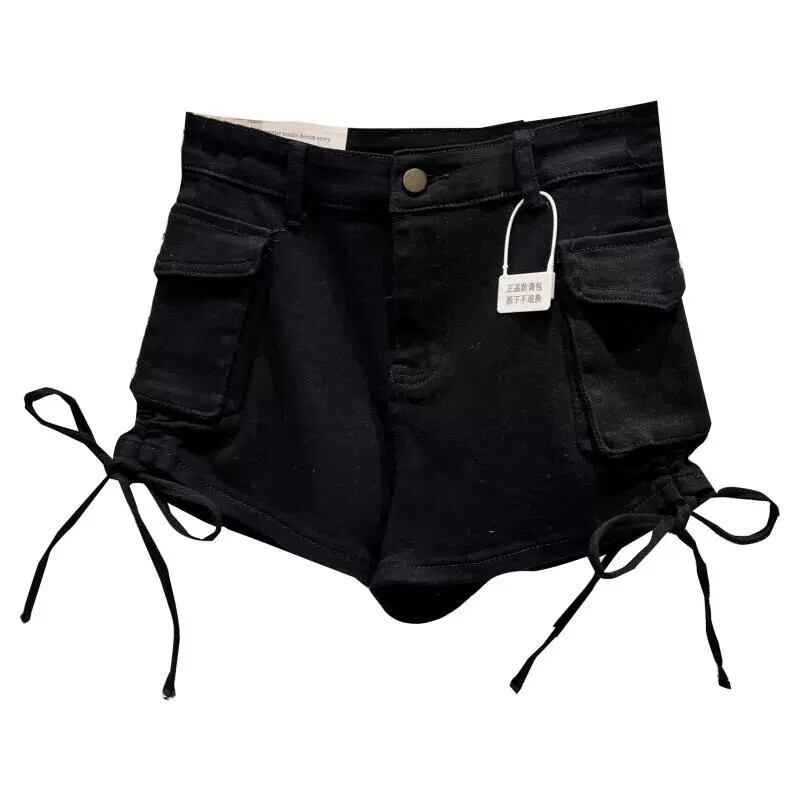 インターネット有名人の同じスタイル2024春の新しい気質大きなサイドポケットストラップ弾性スリムフィット七分丈デニムショートパンツ エラスティック 伸縮 スプリング 春物 ショーツ ブルマー gyan3358488544026 | vestitialla