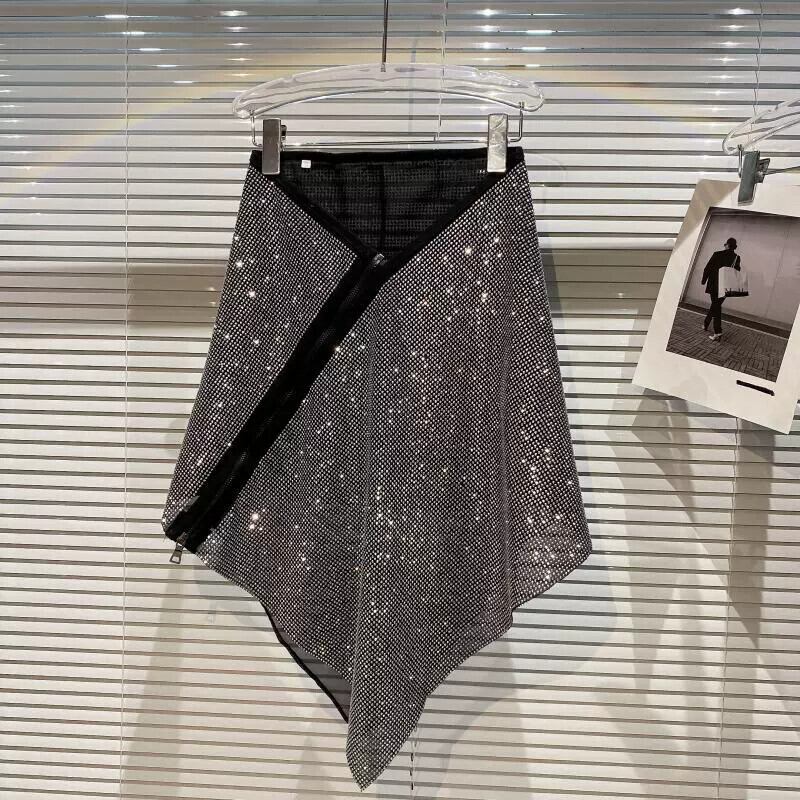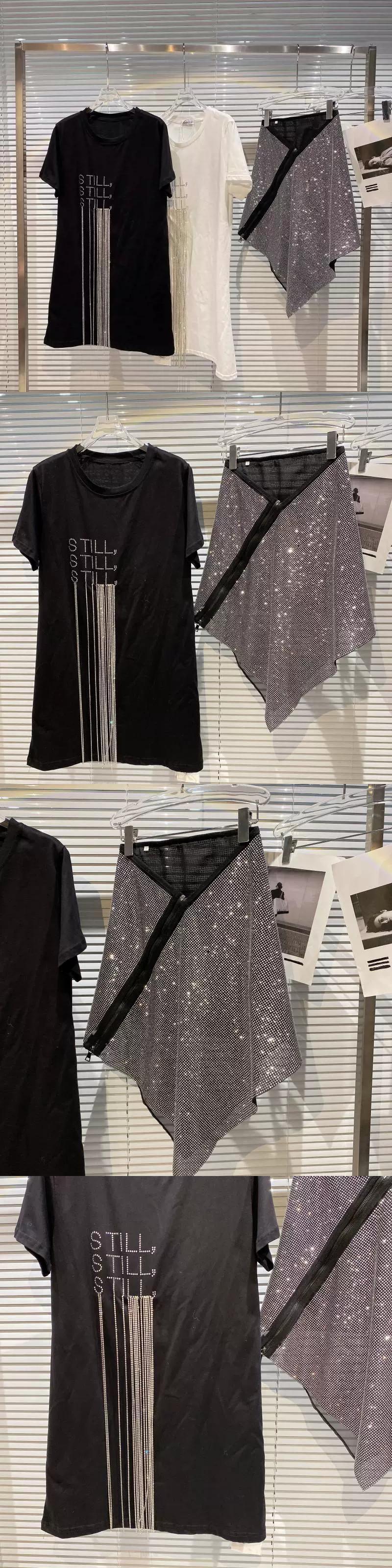 ネット有名人同スタイル2024春新作ダイヤモンドレターロングダイヤモンドチェーンロングTシャツ+ベベルジッパーダイヤモンドスカートスーツ スプリング 春物 gyan3328731095795 | vestitialla