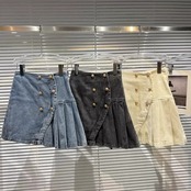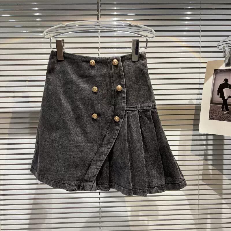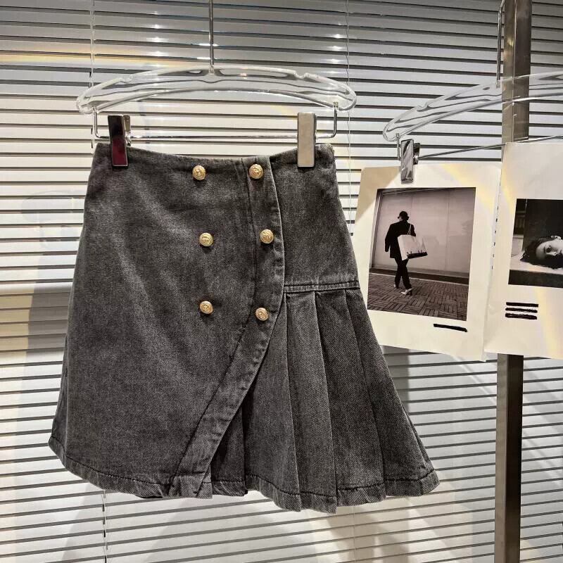 インターネット有名人同じスタイル 2024 春の新スタイル小さな香りのスタイル面取り金属バックルプリーツステッチデニムスカートショートスカート女性 スプリング 春物 gyan3364963865075 | vestitialla
