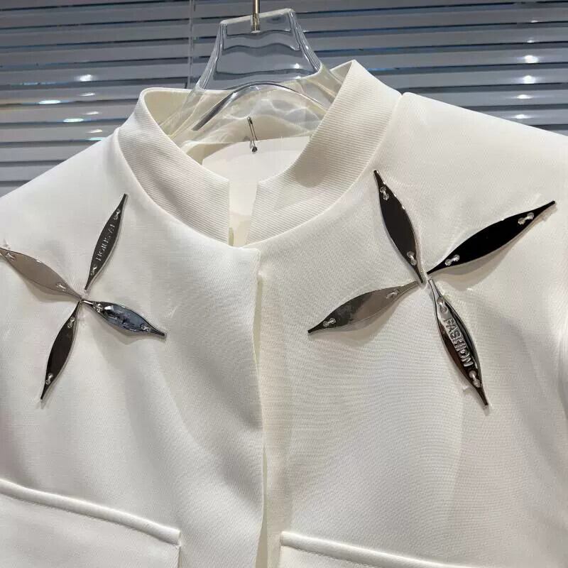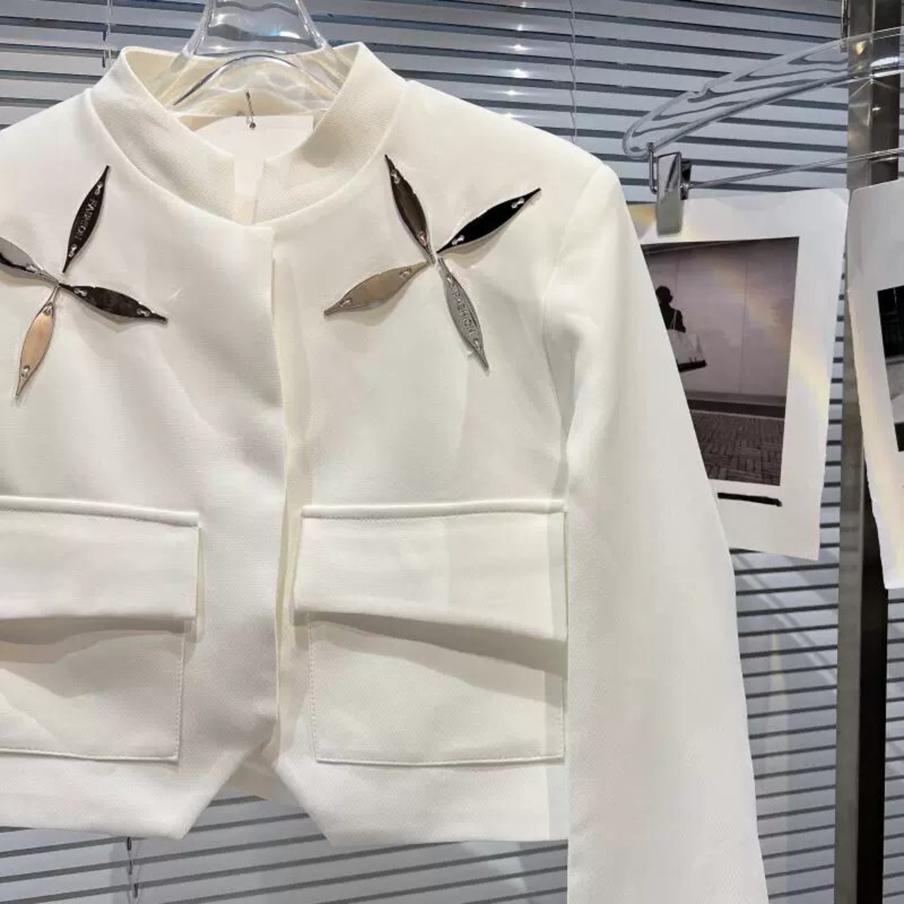 インターネットセレブと同じスタイル 2024 春の新スタイル小さな香りのスタイルダブルポケット金属プレート装飾スタンドカラージャケットショートコートトップ女性 スプリング 春物 gyan3335640949171 | vestitialla