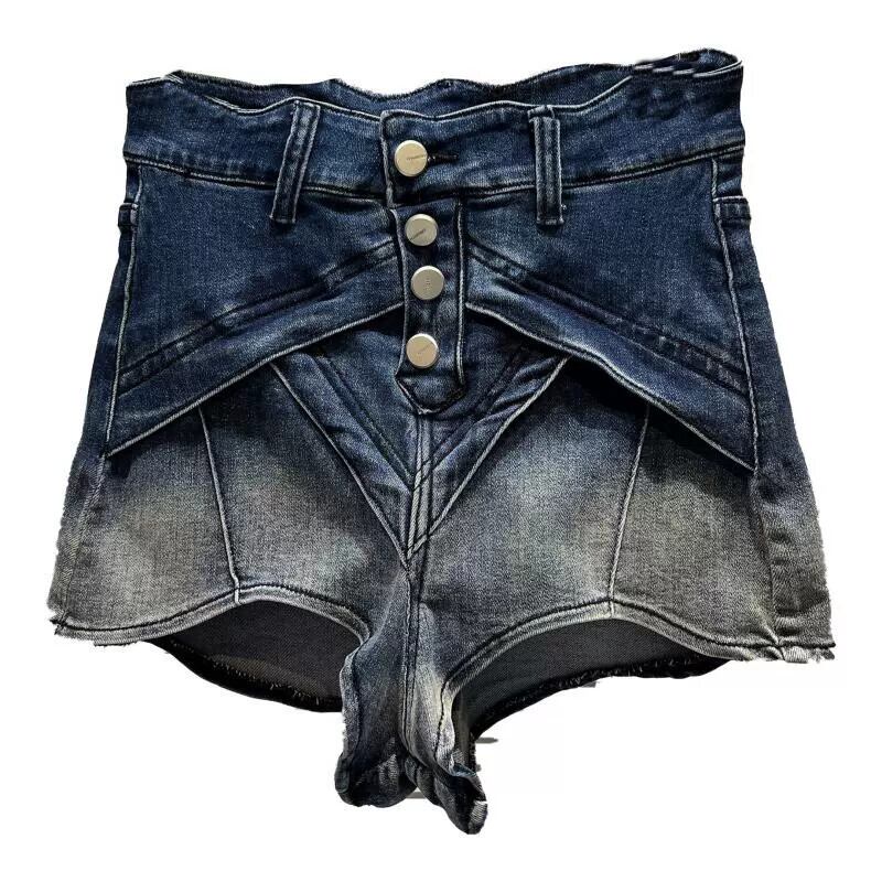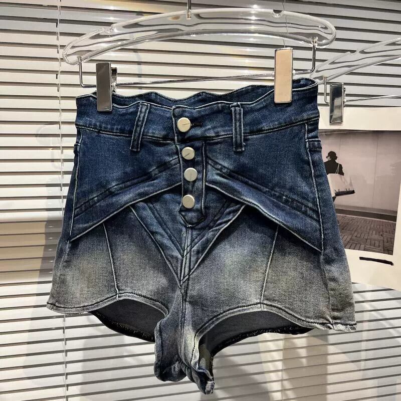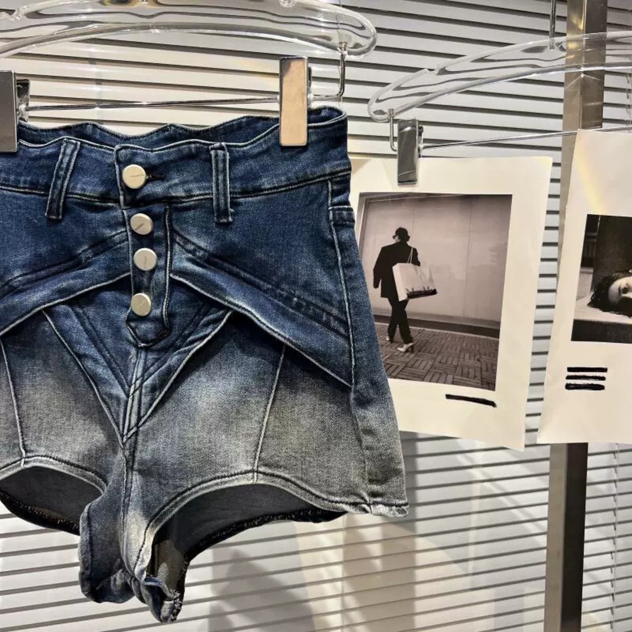 インターネット有名人の同じ2024春の新しいスタイルの小さな香りのグラデーションウォッシュクラフトパーソナライズされたタイトな3点デニムスーパーショーツ スプリング 春物 ブルマー gyan336456410226 | vestitialla
