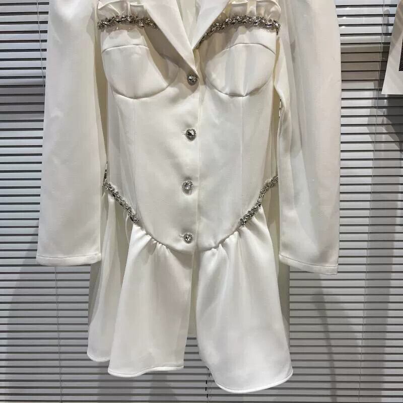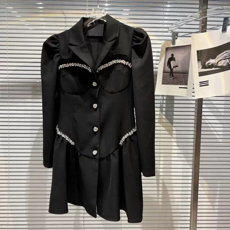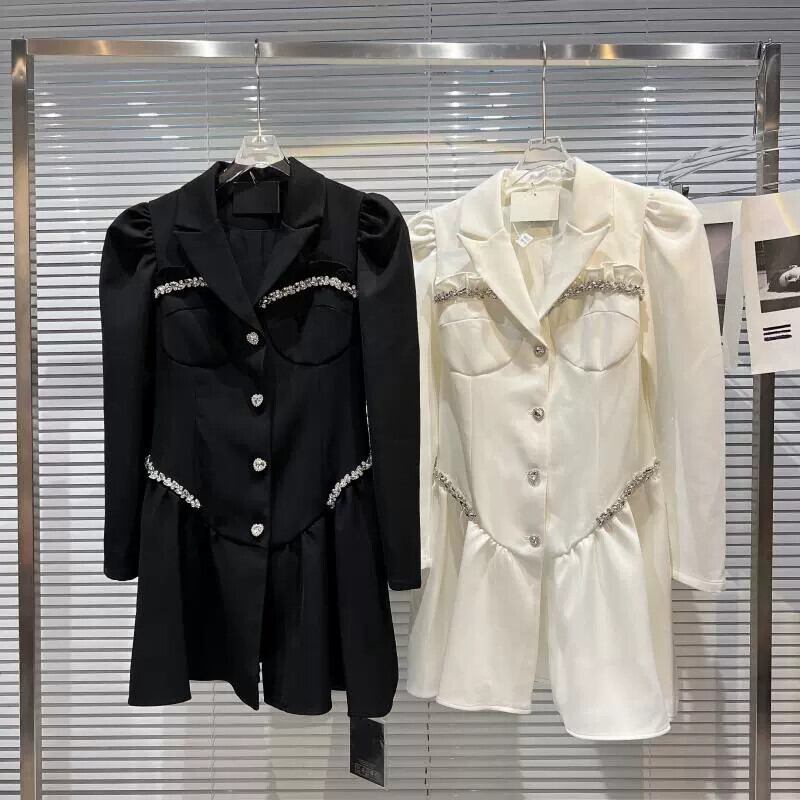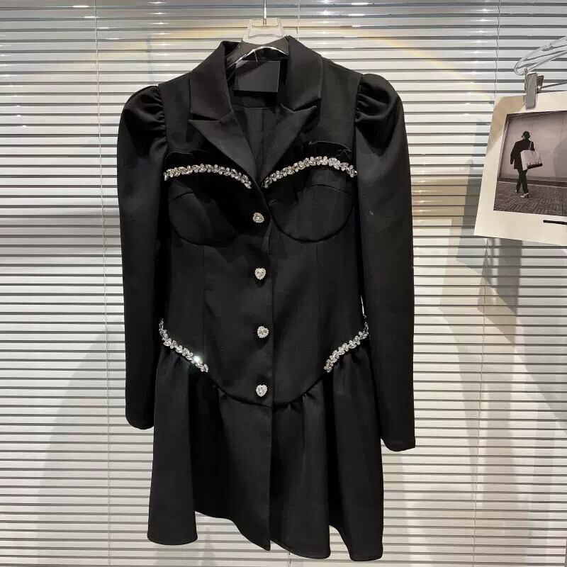 インターネット有名人の同じスタイル2024春の新しいスタイルの小さな香りの愛のハートラインストーンエッジデザインパフスリーブブレザードレス スプリング 春物 gyan3320442277077 | vestitialla