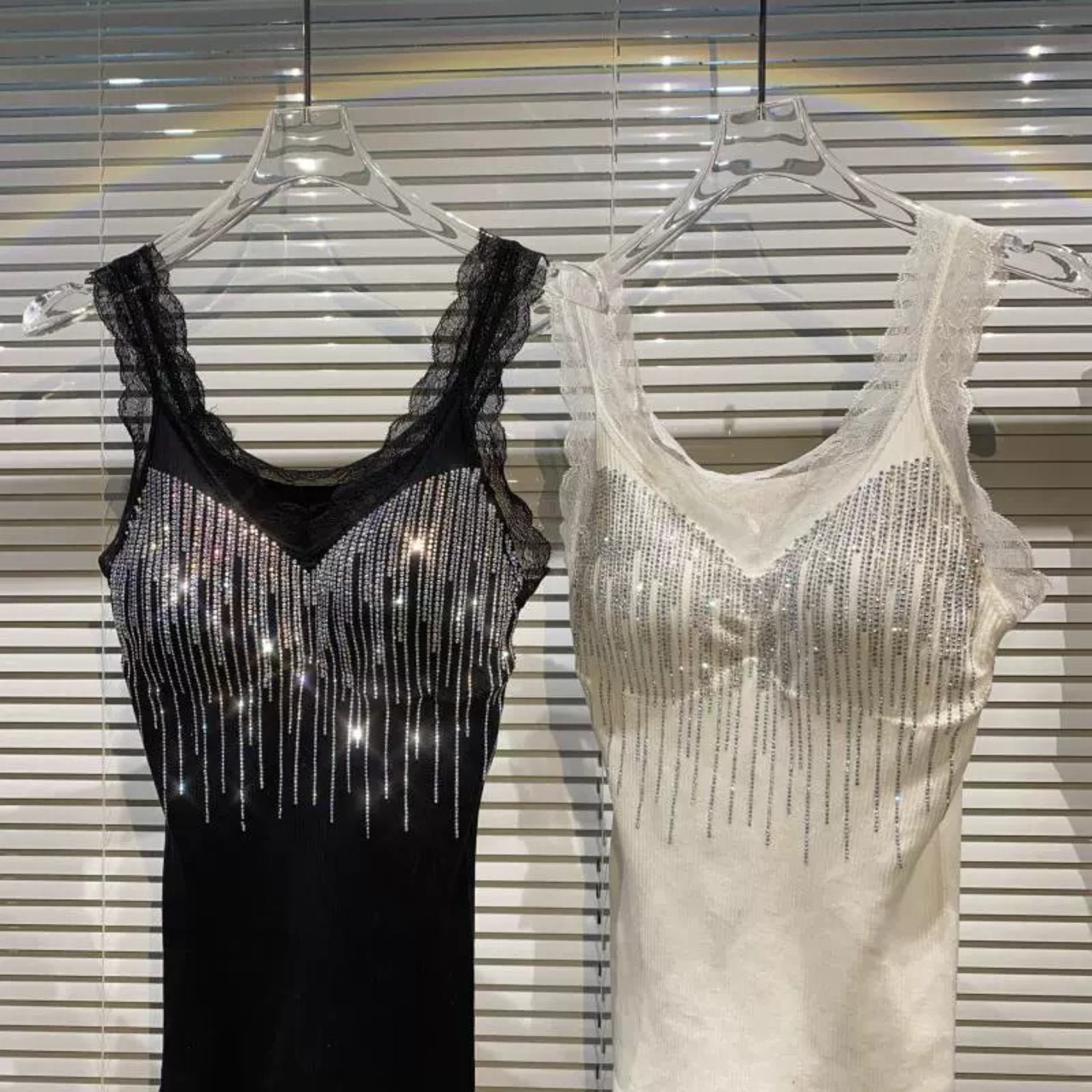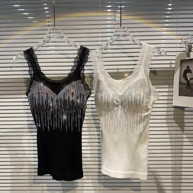 インターネット有名人同じスタイル 2024 春の新滝粒子ラインストーンレースショルダーストラップナイトクラブスリム胸パッドベストサスペンダー スプリング 春物 gyan3366505898921 | vestitialla