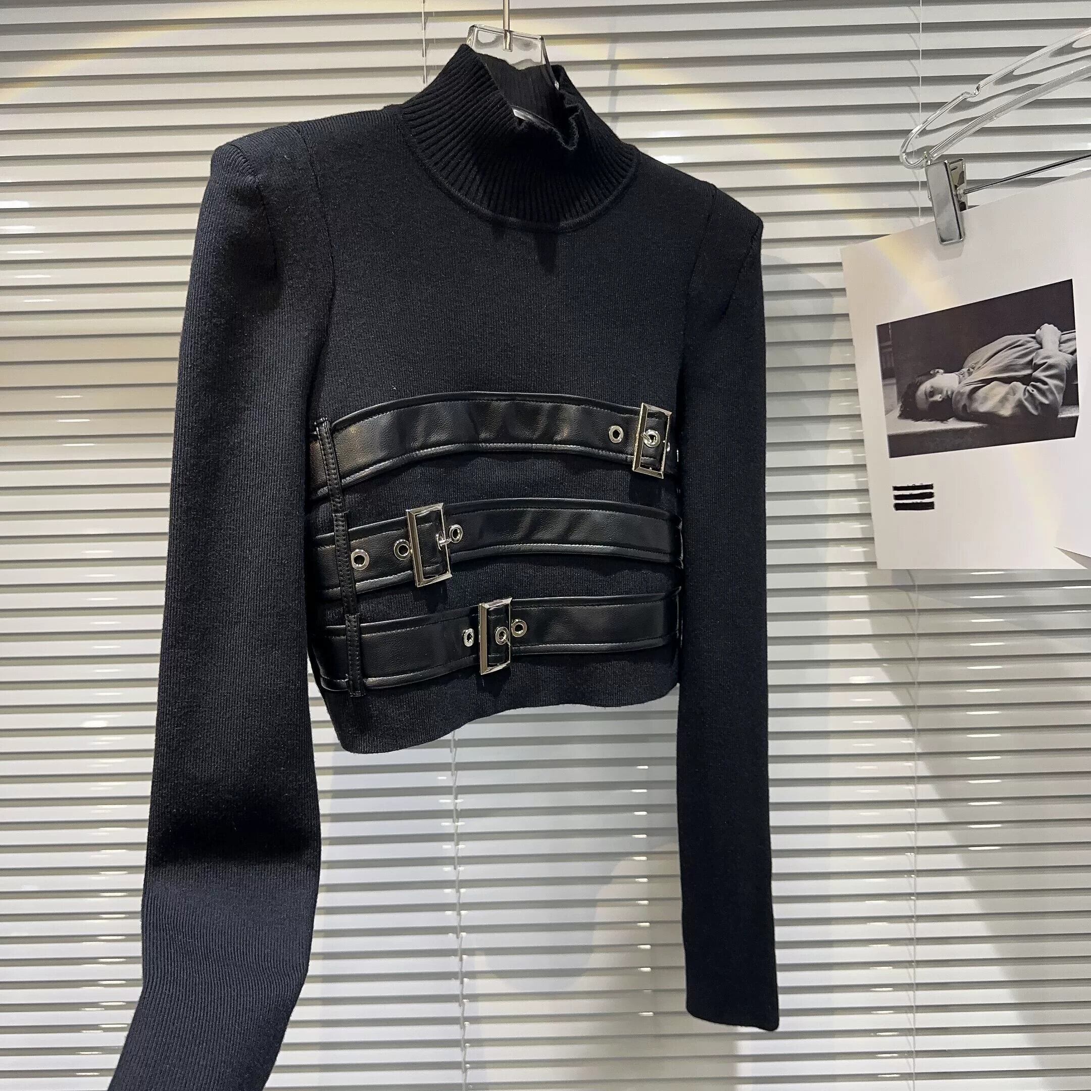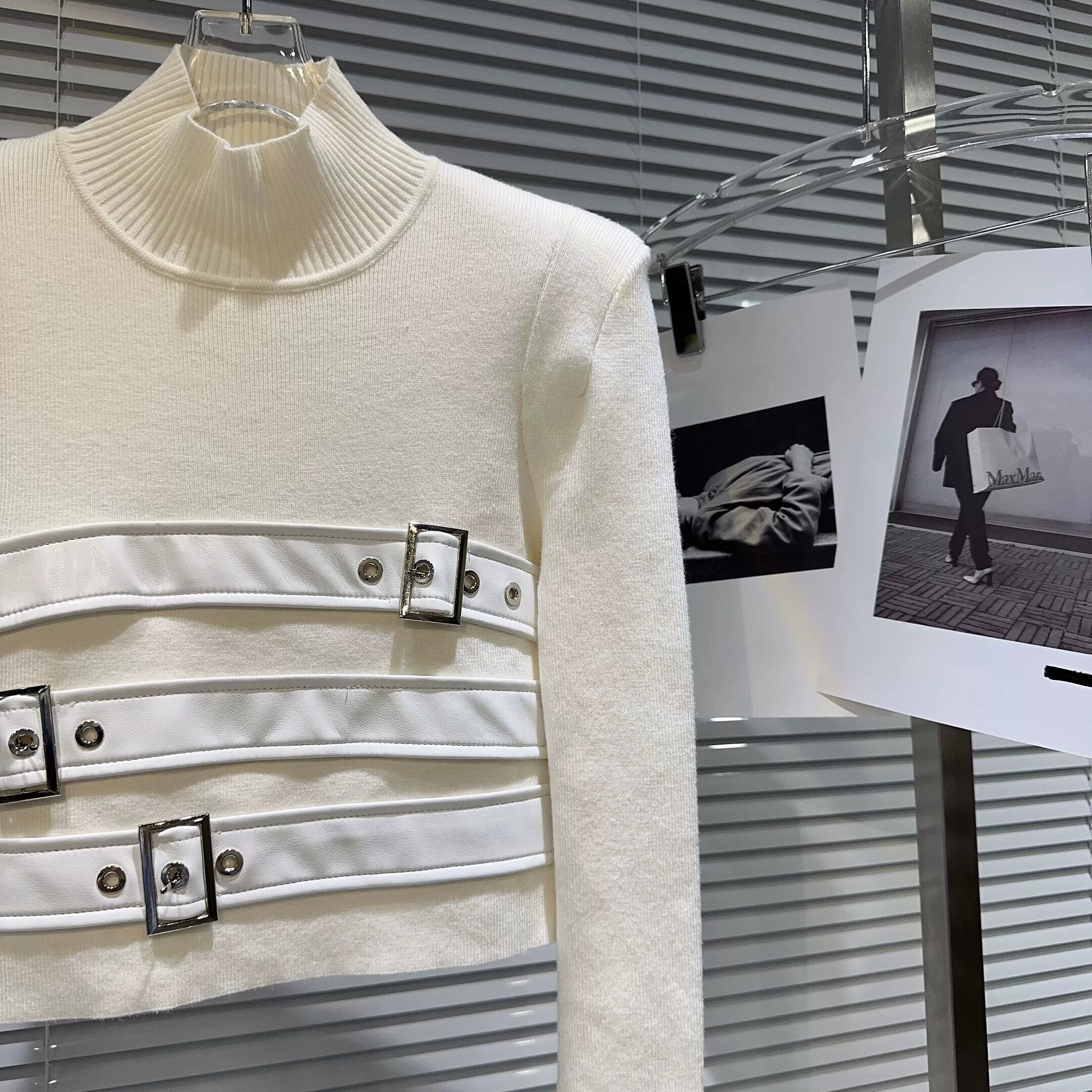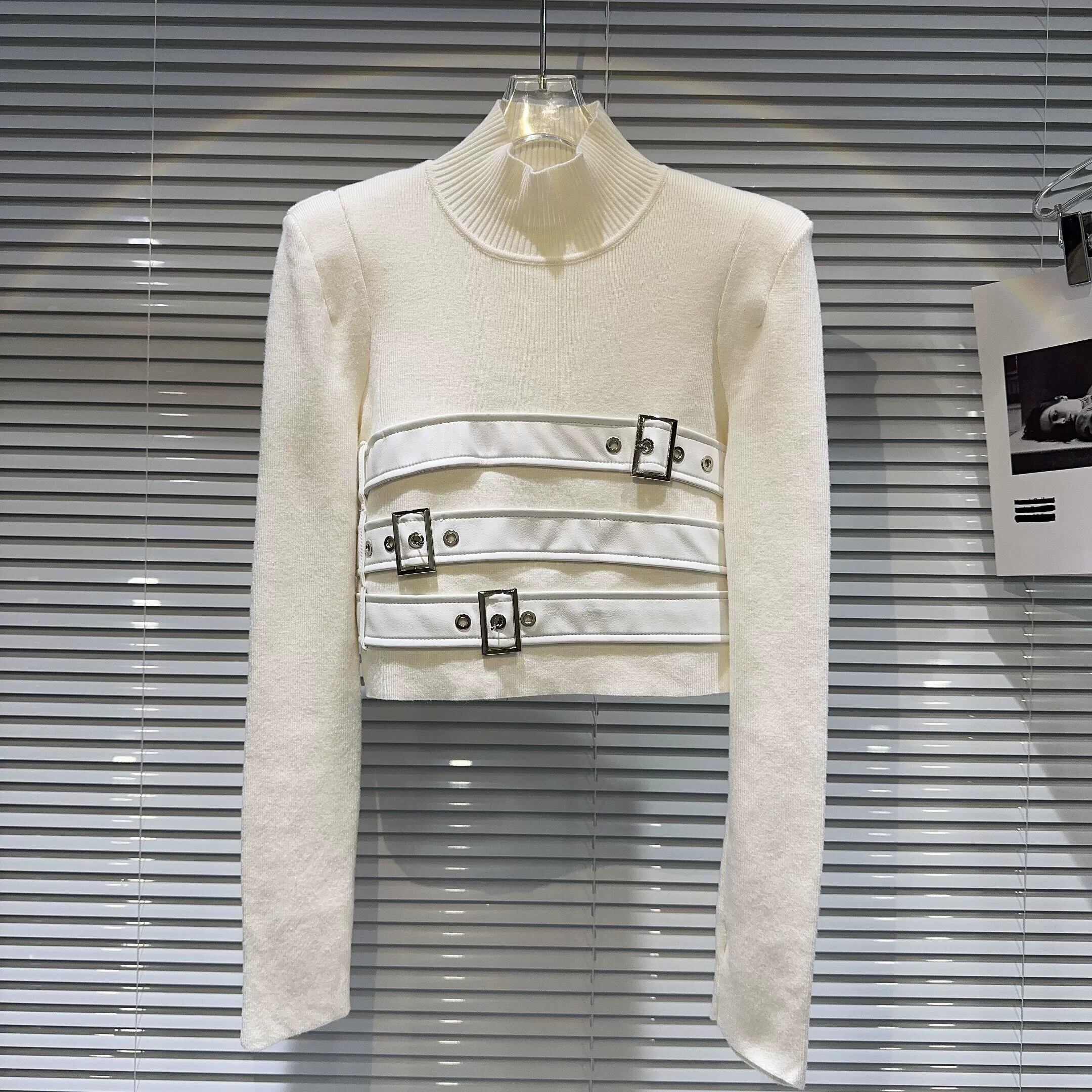 インターネットセレブと同じスタイル 2024 春の新スタイルニッチセレブピックアップバックルストラップスリムハイカラーショルダーパッドセーター スプリング 春物 gyan3373088761433 | vestitialla