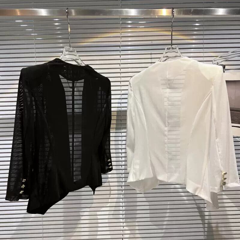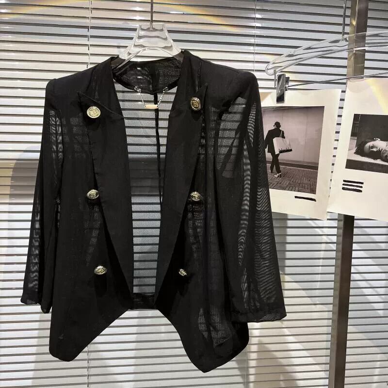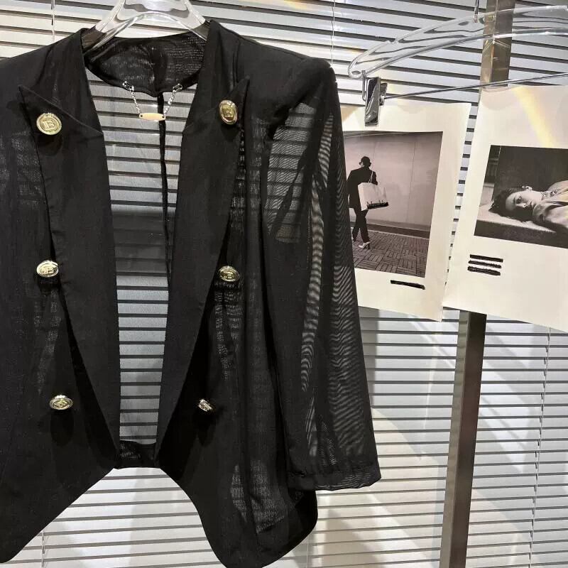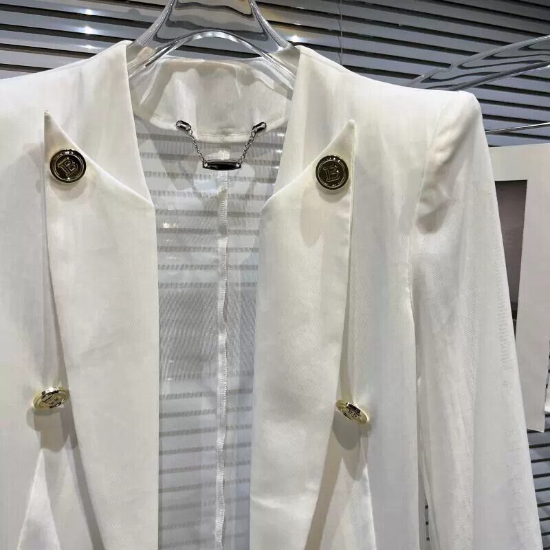 インターネット有名人の同じスタイル 2024 春の新スタイルの小さな香りのスタイルのメタルレターメッシュ日焼け止めウエストとショルダーパッドスーツ女性 スプリング 春物 gyan3385605258843 | vestitialla