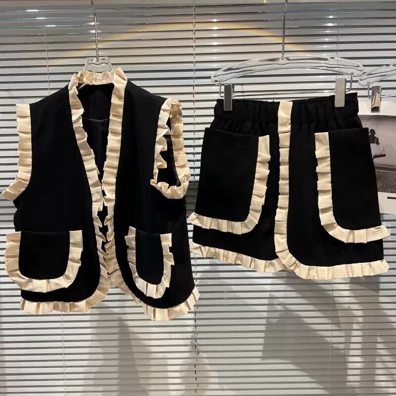 インターネット有名人の同じスタイル 2023 新しい秋スタイル小さな香りのよいプリーツレーススーツベスト + 弾性ウエストバッグヒップスカートスーツ エラスティック 伸縮 オータム 秋物 gyan3364581555719 | vestitialla