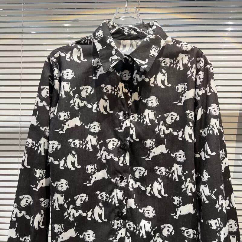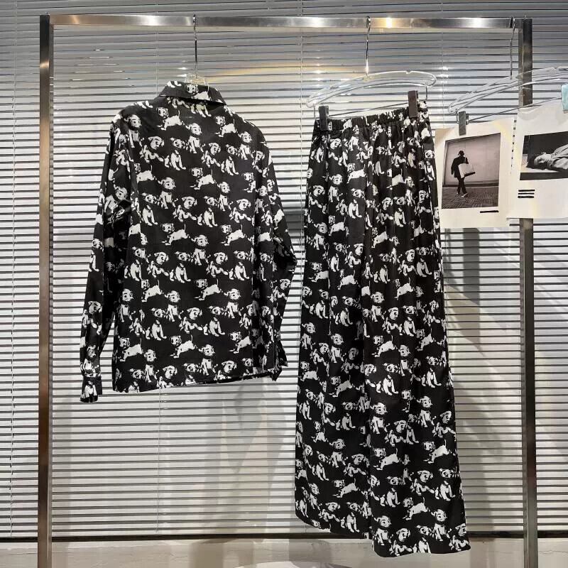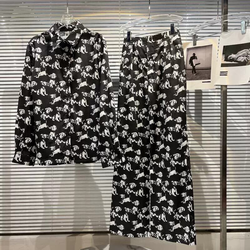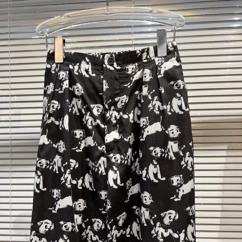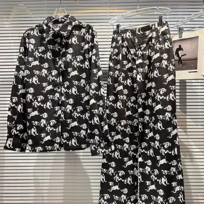 インターネット有名人の同じスタイル 2024 春の新スタイル Xiaoxiang スタイルの漫画の犬のパターンのシャツ + ウエストゴムワイドレッグパンツスーツ エラスティック 伸縮 スプリング 春物 ワイドパンツ gyan3328568442393 | vestitialla