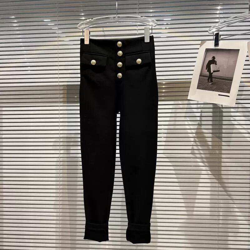 インターネットセレブの同じ2024春の新しいスタイルのメタルバックルデザインエレガントな女性プラスベルベット弾性スリムブーツパンツレギンス エラスティック 伸縮 スプリング 春物 gyan3350633951449 | vestitialla
