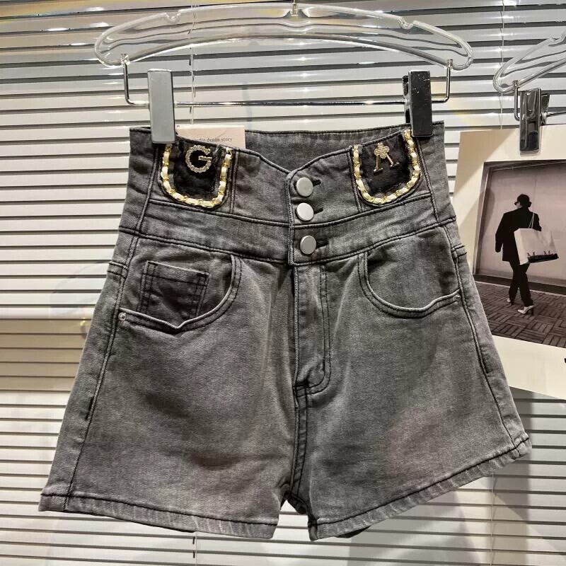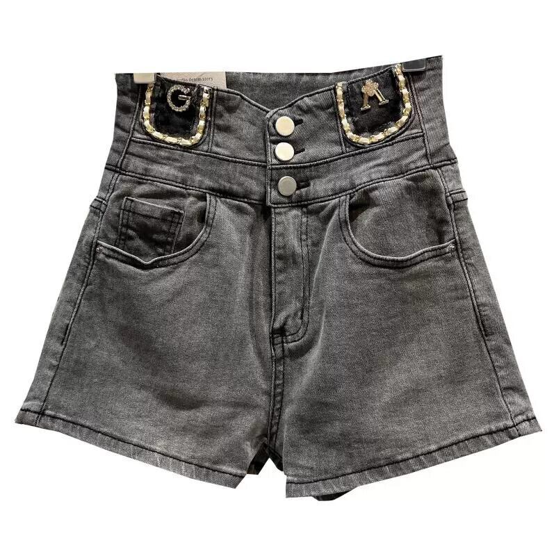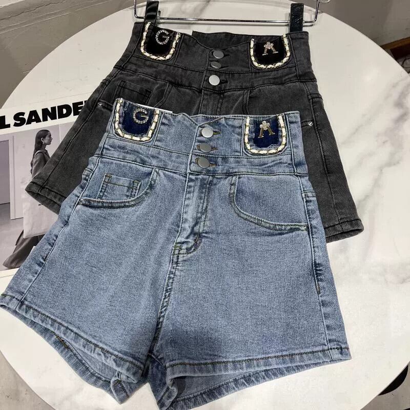 ネットセレブ同スタイル2024春新バージョンベーシックレターメタルデザイン3点ハイウエストデニムショートパンツレディース スプリング 春物 ショーツ ブルマー gyan3319387468303 | vestitialla