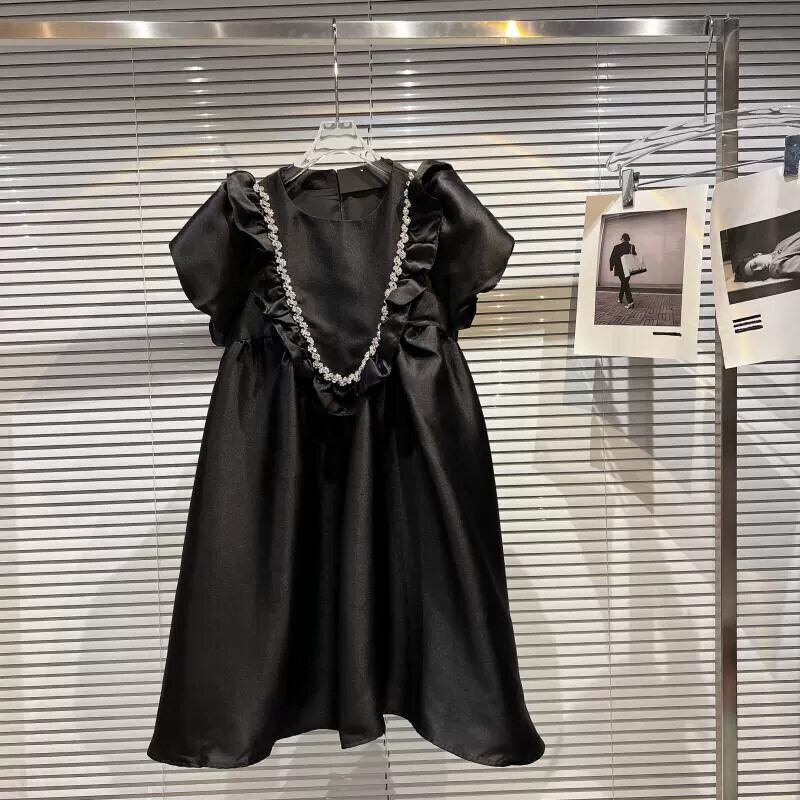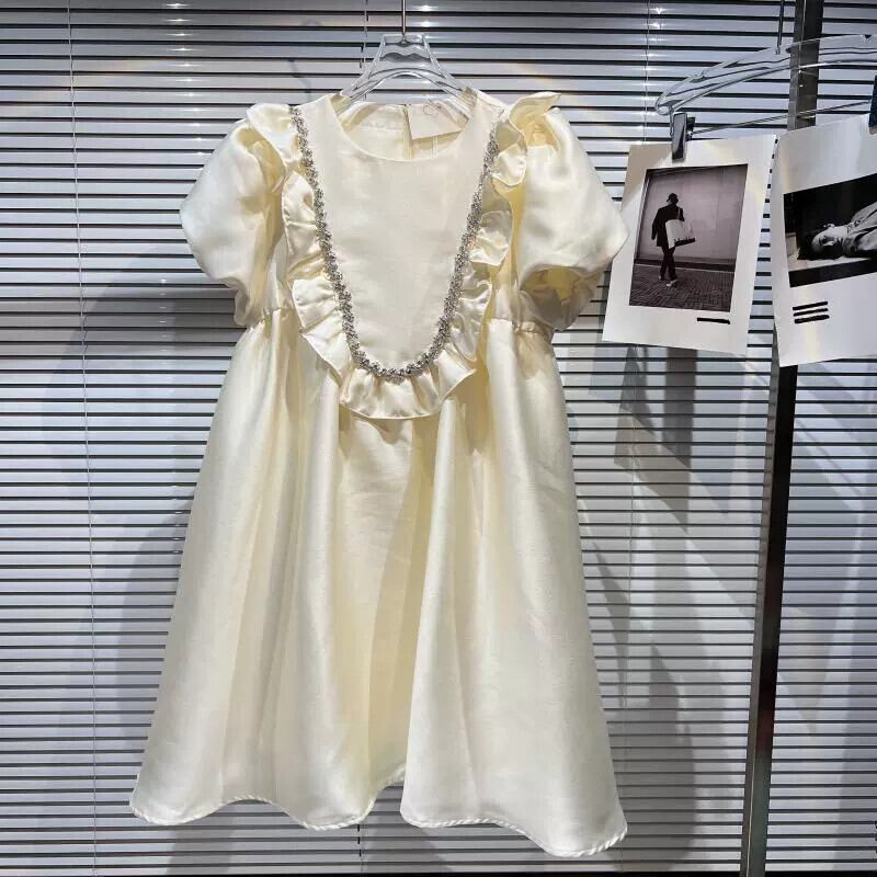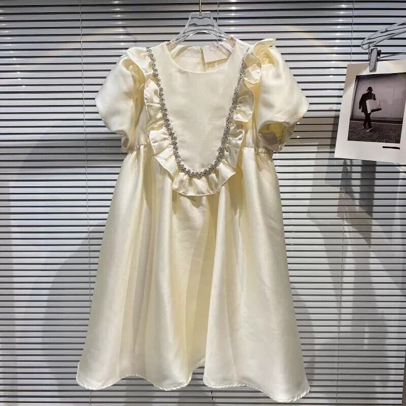 ネット有名人の同じスタイル 2024 春の新スタイルの小さな香りのよい V 字型ラインストーンビーズエッジプリーツウエスト半袖ドレスの女性 スプリング 春物 gyan3368099435650 | vestitialla