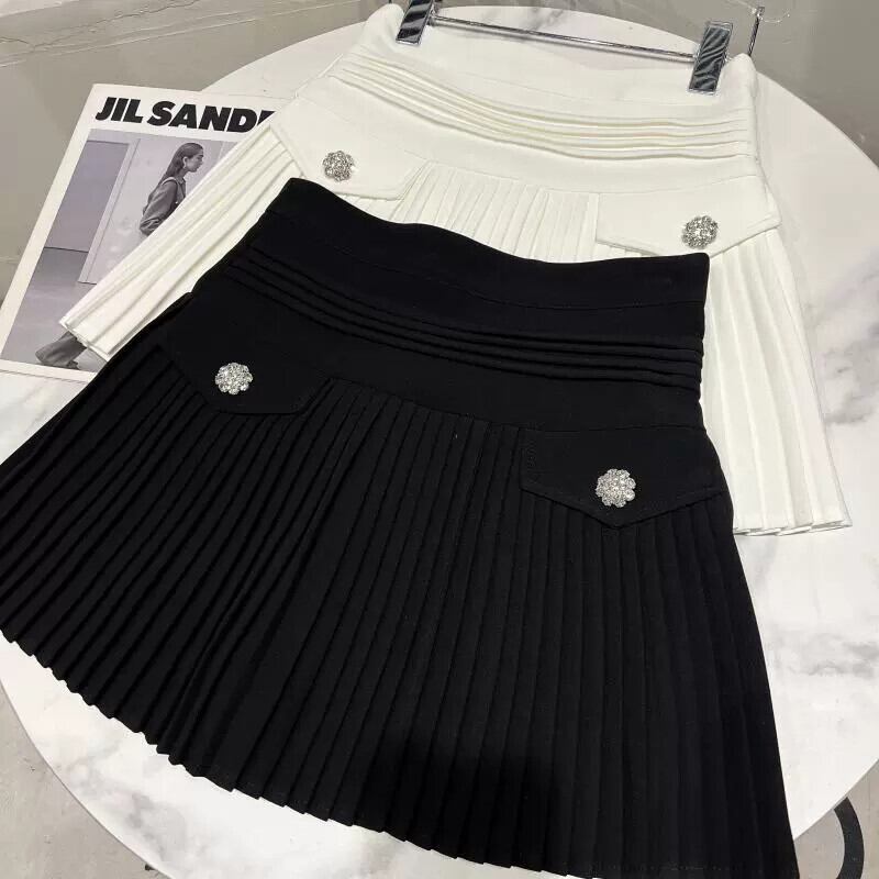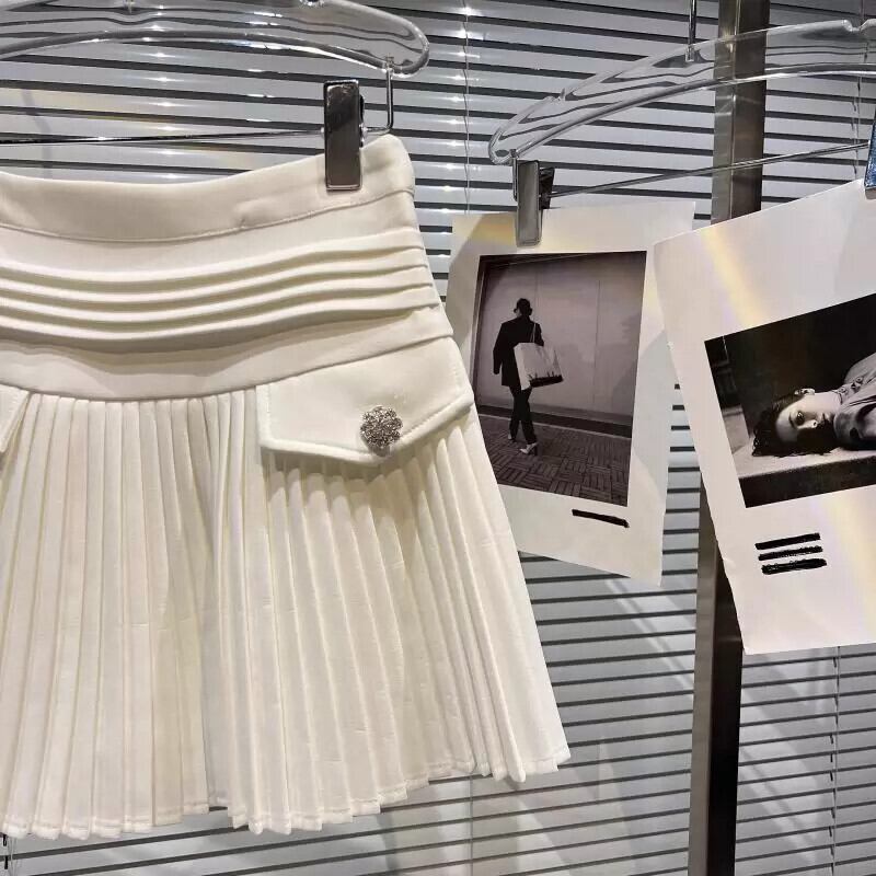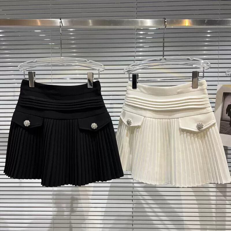 ネット有名人同スタイル2024春新スタイル小さな香りの花ラインストーンバックルダブルポケットデザインプリーツスカートスカートショートスカート スプリング 春物 フラワーデザイン gyan3356048561017 | vestitialla