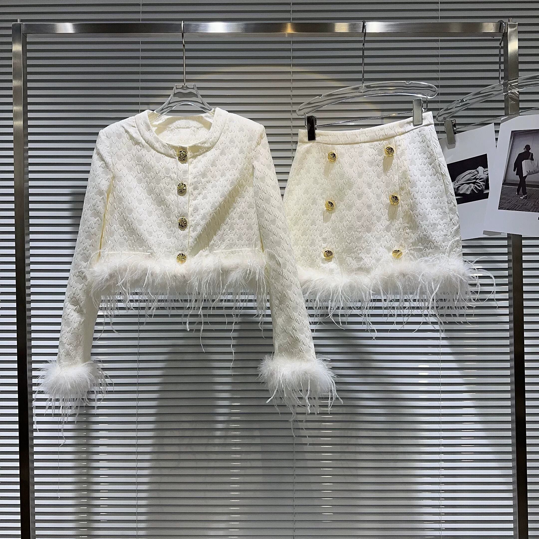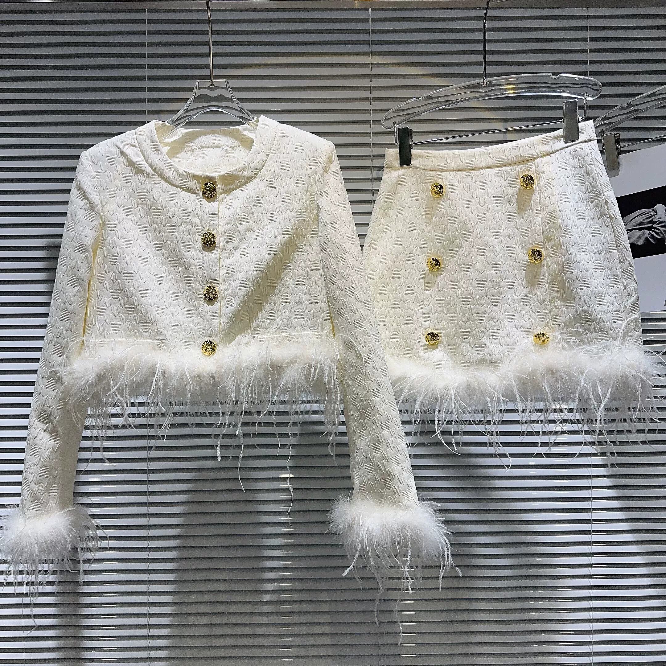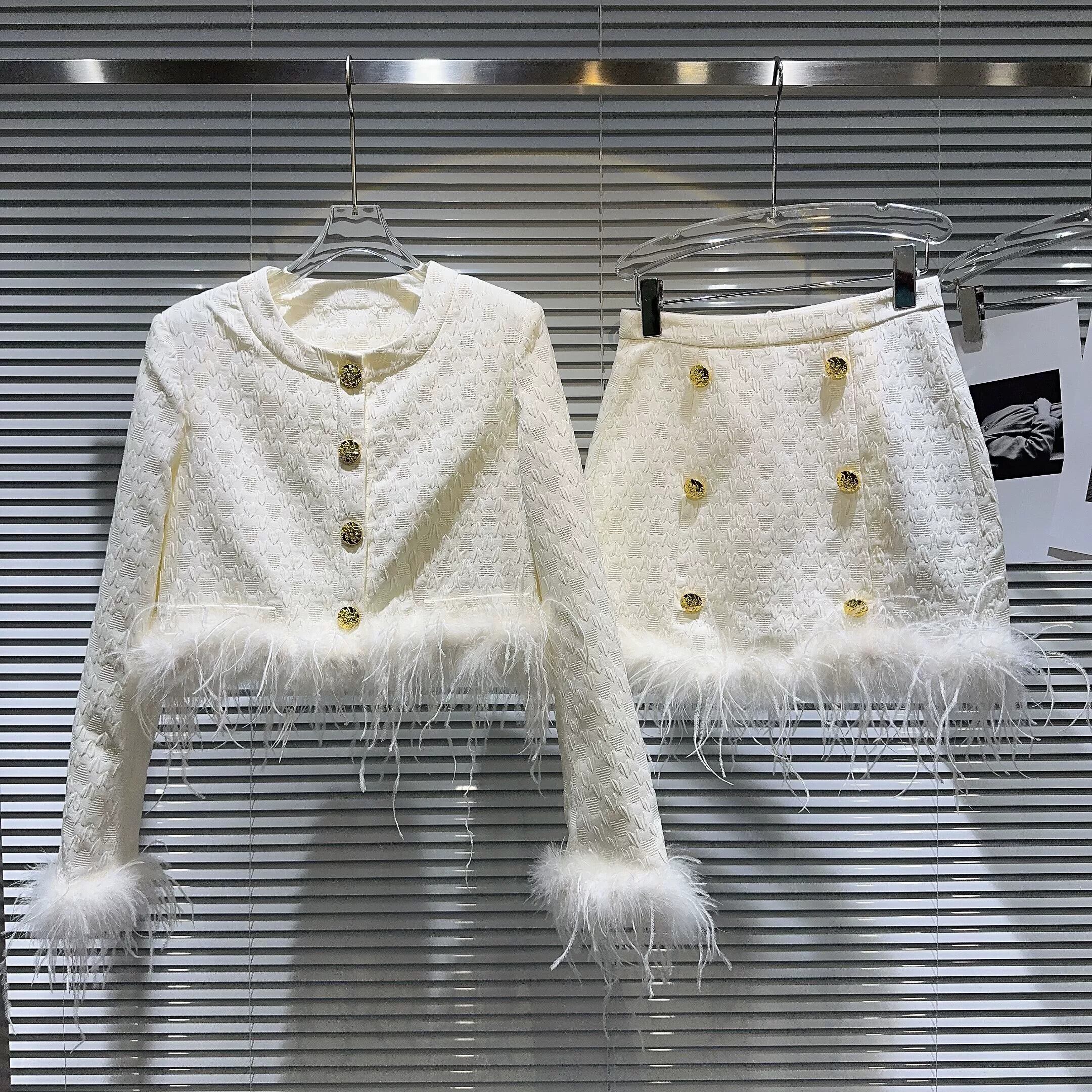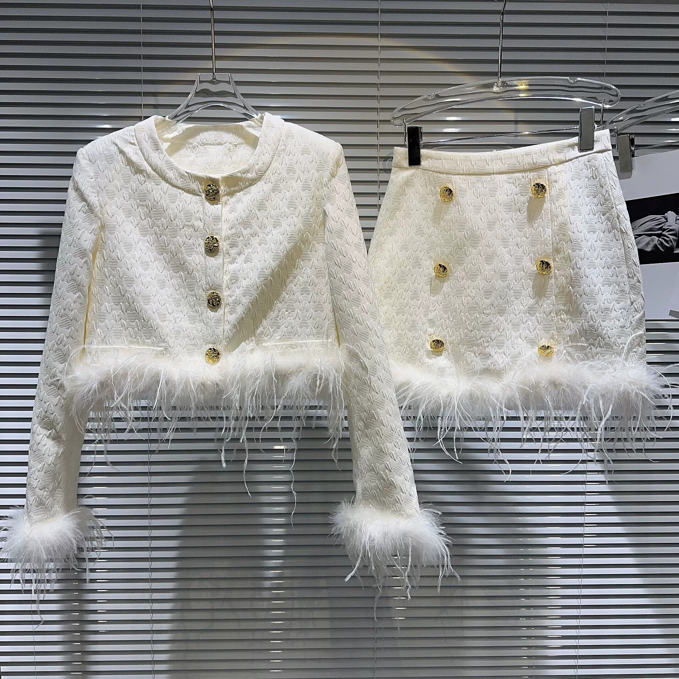 インターネット有名人同様の2024春の新スタイルXiaxiangfengファーエッジパターンショートジャケット+メタルバックルスカートスーツ スプリング 春物 gyan338772703247 | vestitialla