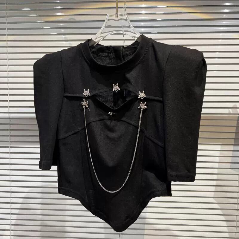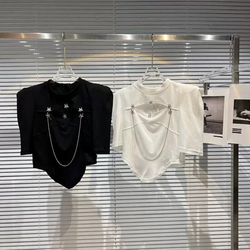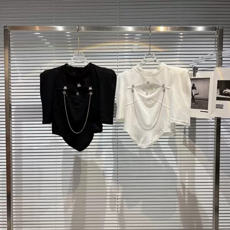 ネット有名人の同じスタイル 2024 春の新スタイルの小さな香りのよい蝶のチェーン中空胸小さな半袖 T シャツの女性 スプリング 春物 Tシャツ gyan3324623121379 | vestitialla