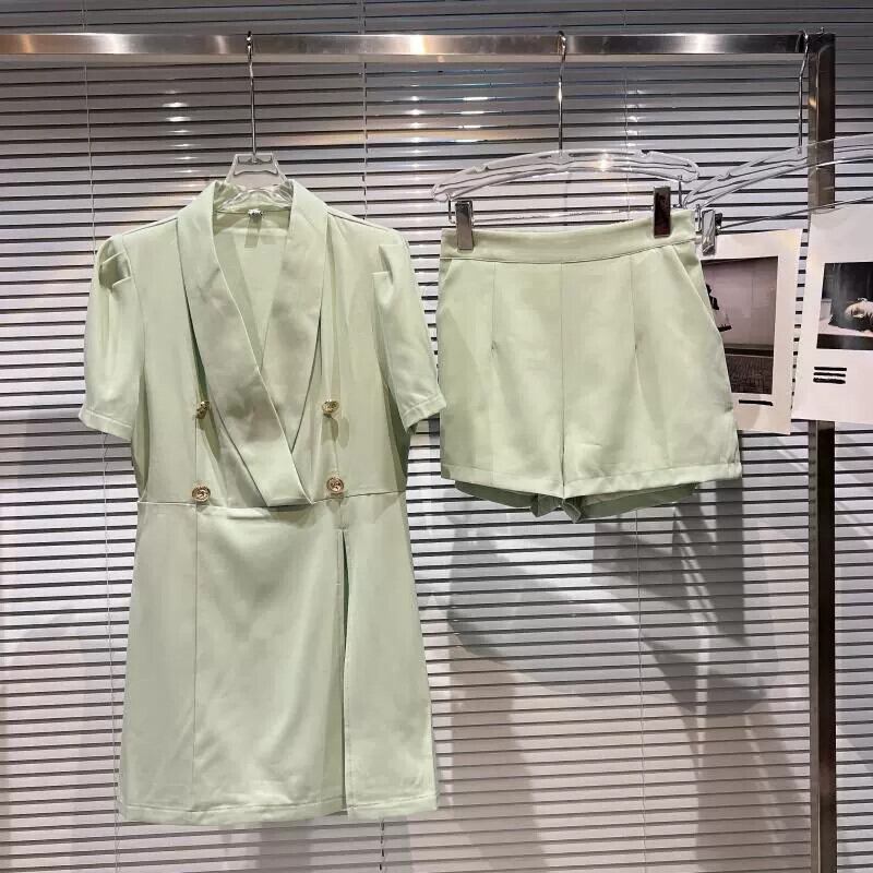 ネット有名人の同じスタイル 2024 新しい夏のスタイル小さな香りのよい金属バックル半袖スーツウインドブレーカー + ショーツツーピーススーツ女性 サマー 夏物 ブルマー gyan3383422335873 | vestitialla