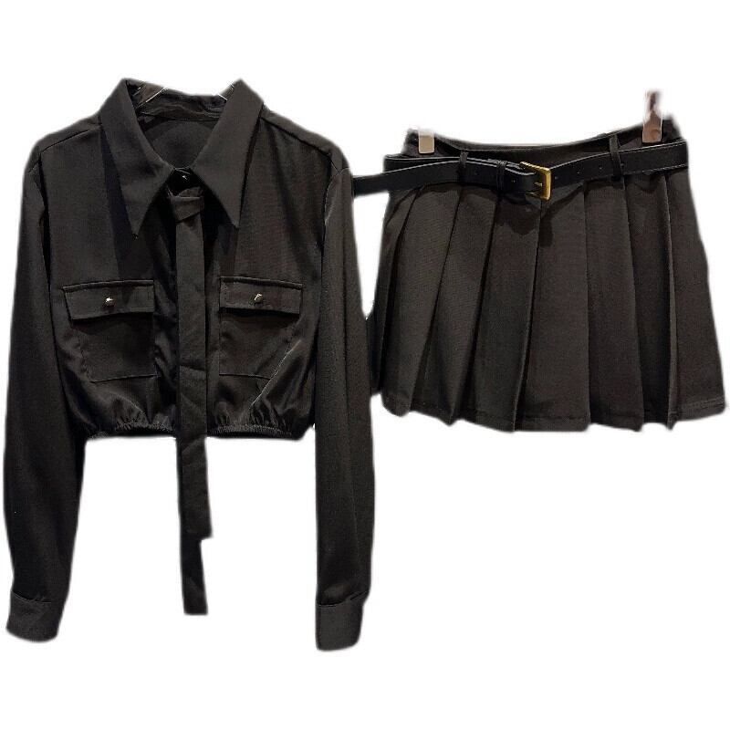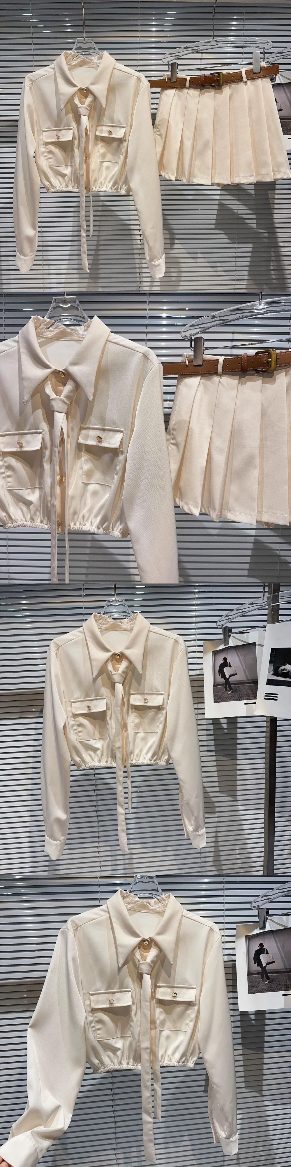 インターネット有名人の同じスタイル 2024 春の新スタイルの小さな香りのネクタイウエストシャツトップ + プリーツスカートスカートスーツ女性 スプリング 春物 gyan3326176619939 | vestitialla