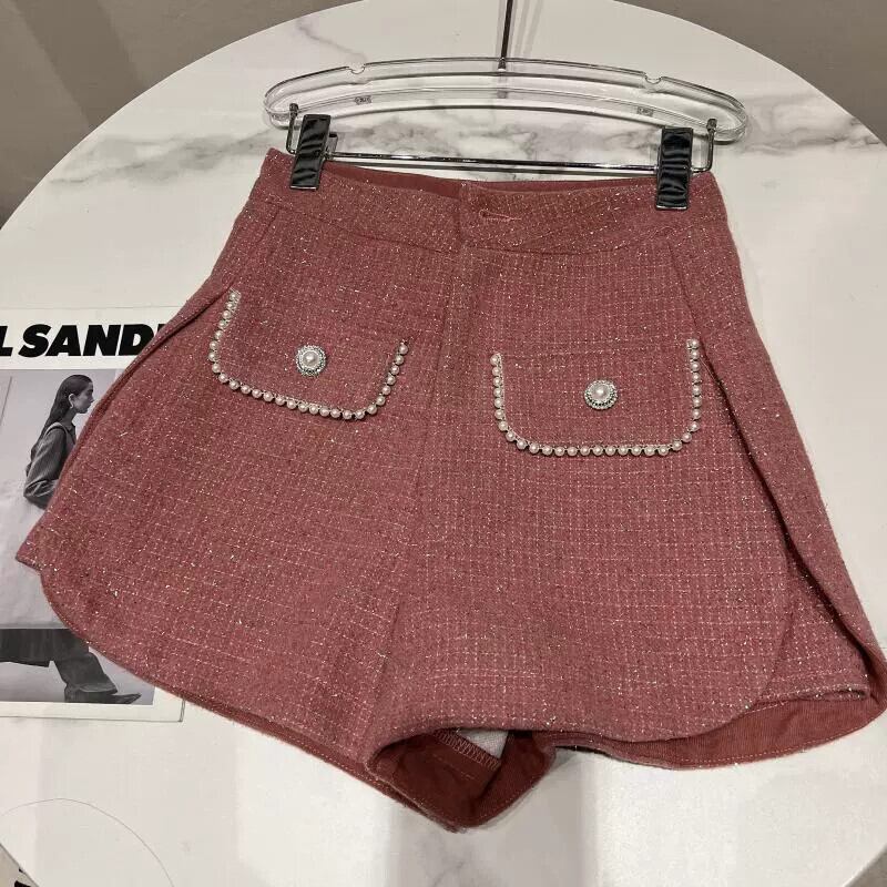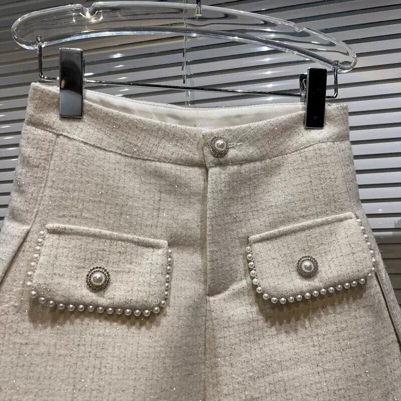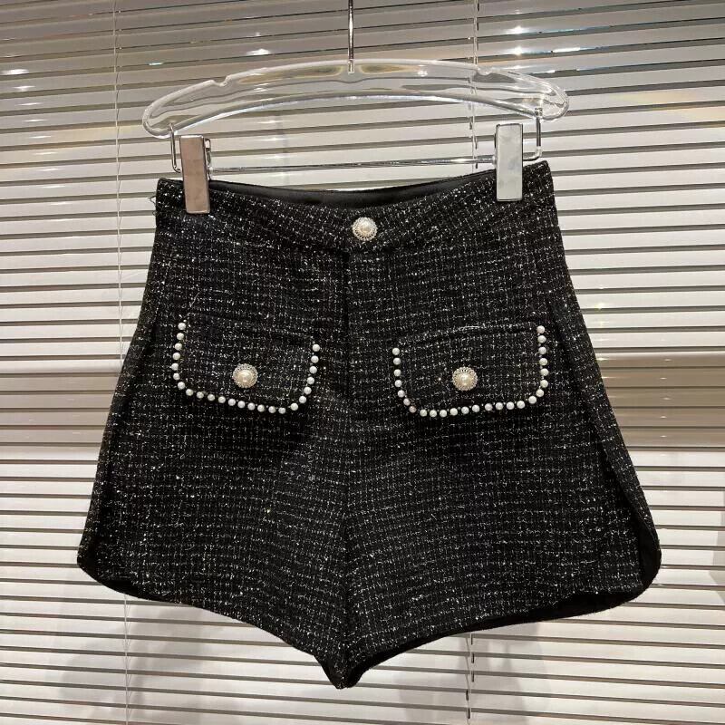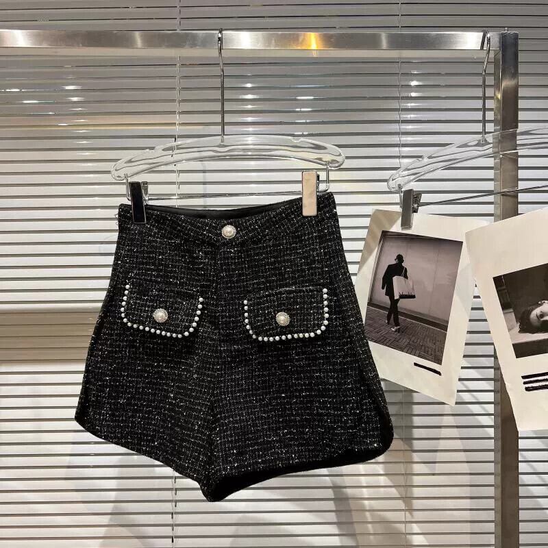 ネット有名人の同じスタイル 2024 春の新スタイルの小さな香りのよいパールエッジダブルポケット明るいシルクウールの 3 点スーツ小さなショートパンツの女性 スプリング 春物 ショーツ ブルマー 真珠 gyan3372931218399 | vestitialla