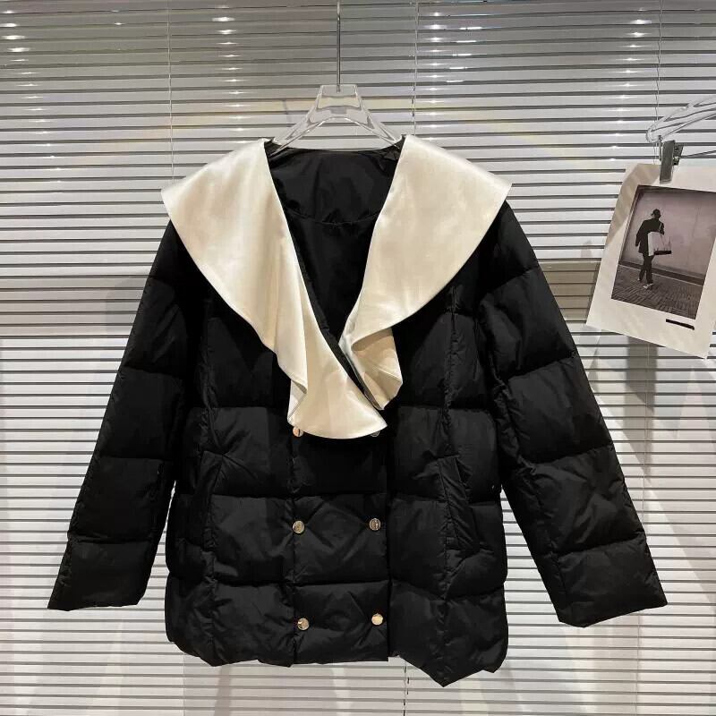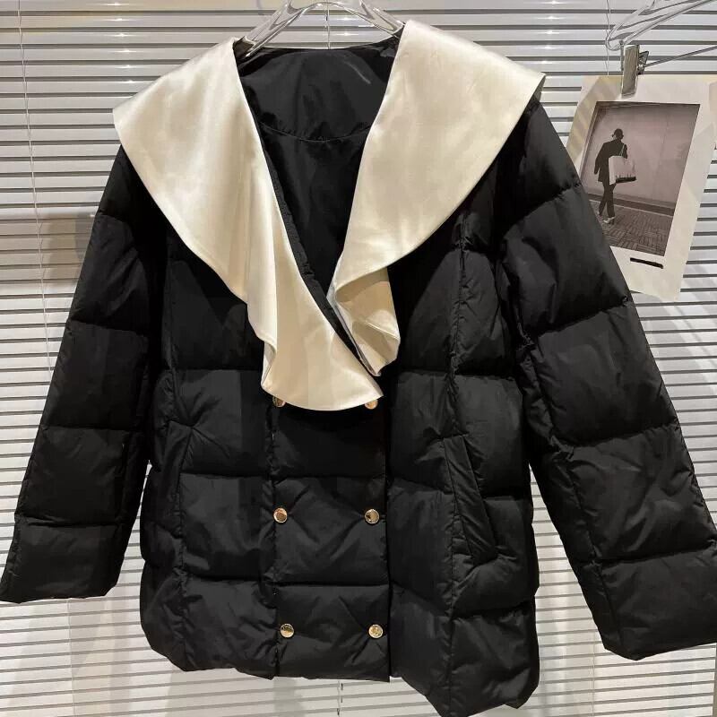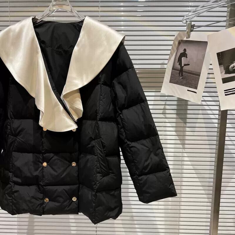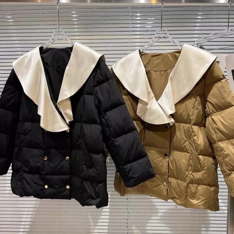 ネット有名人の同じスタイル 2024 新しい冬スタイル小さな香りの良いシルクショールカラーダブルブレストルーズダウンコットンコートの女性 ウィンター 冬物 gyan3334090504093 | vestitialla