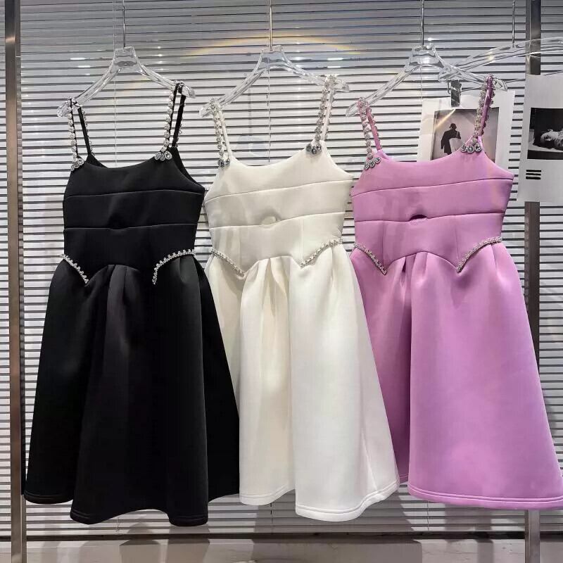 インターネットセレブと同じスタイル 2024 夏の新スタイル小さな風水ダイヤモンドビーズウエストウエストスペースコットンミニドレスサスペンダードレス サマー 夏物 gyan3381625685996 | vestitialla