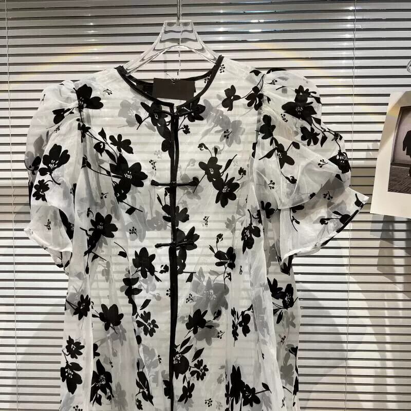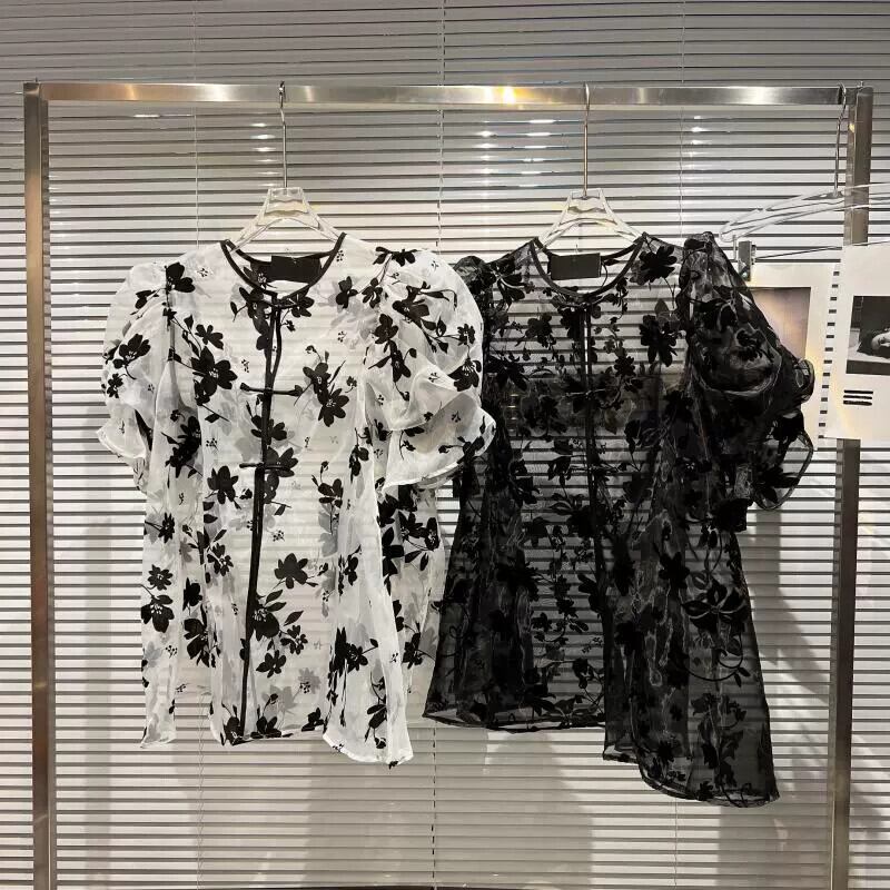 インターネットセレブと同じスタイル 2024 夏の新スタイル小さな香りレトロボタン刺繍パフスリーブメッシュ日焼け止めシャツジャケット レッド サマー 夏物 gyan3319768980154 | vestitialla