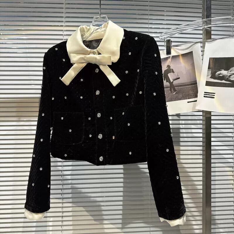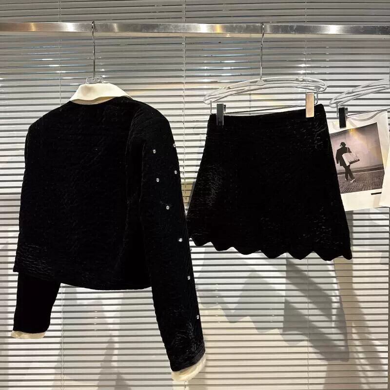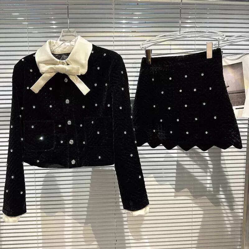 インターネット有名人の同じスタイル 2024 春の新スタイルの小さな香り星空のラインストーンのベルベットのジャケット + ベルベットのスカートのスーツの女性 スプリング 春物 gyan3383100572752 | vestitialla