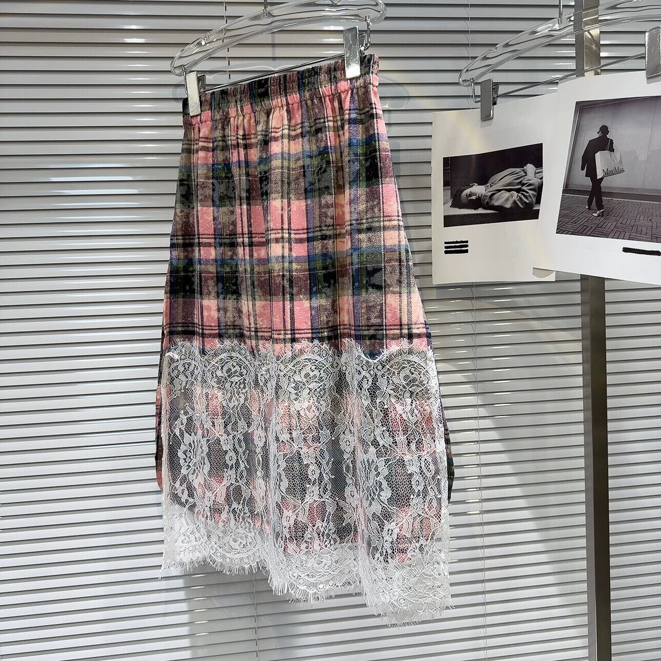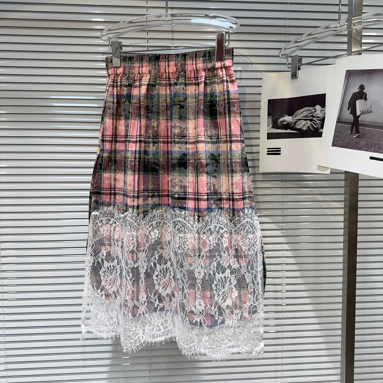 ネット有名人同スタイル2024春夏新作ニッチモデルレースエッジスプライシングチェック柄ストリートトレンドミドル丈ワンステップスカートスカート スプリング 春物 サマー 夏物 gyan333786520741 | vestitialla
