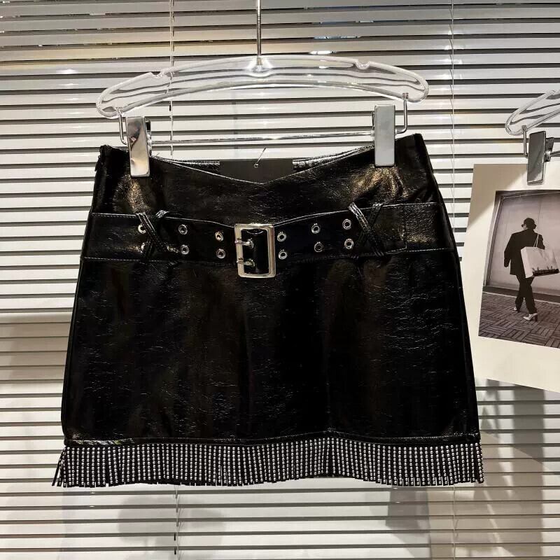 インターネットセレブと同じスタイル 2024 春の新ダークラインストーンテルエッジ光沢のあるパテントレザー PU レザーヒップスカートショートスカート スプリング 春物 gyan3342937854362 | vestitialla