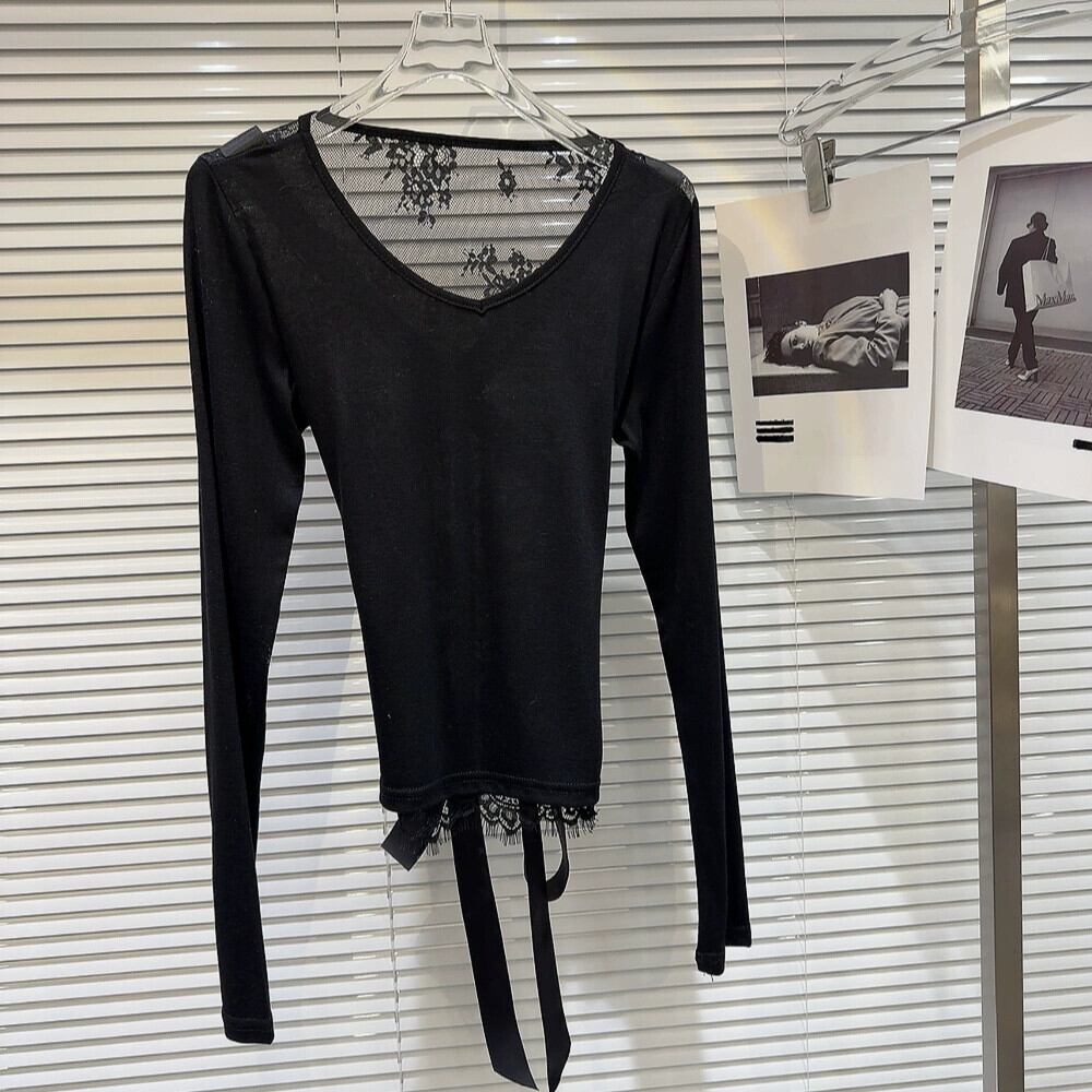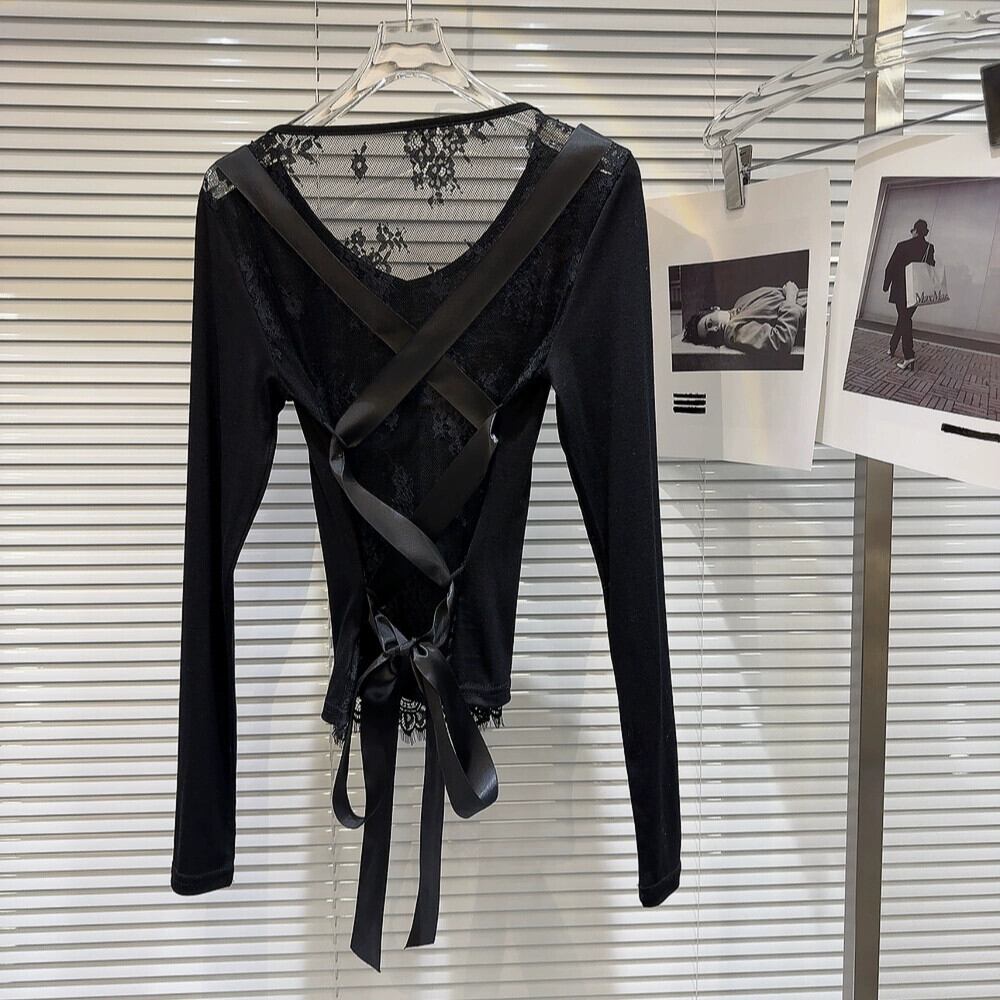 ネットセレブと同じスタイル2024春新作セクシーセレブバックストラップメッシュフック柄ほんのりシースルー長袖Tシャツ小さめシャツ ロング スプリング 春物 gyan3317426266819 | vestitialla