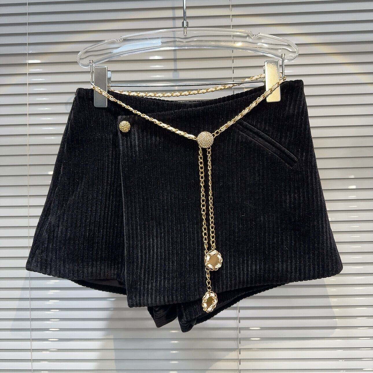 インターネット有名人の同じスタイル 2024 春の新スタイル少し香りの良い女性メタルウエストチェーンベルベットスカート折りたたみ小さなショートスカートパンツ女性 スプリング 春物 gyan3388002376803 | vestitialla