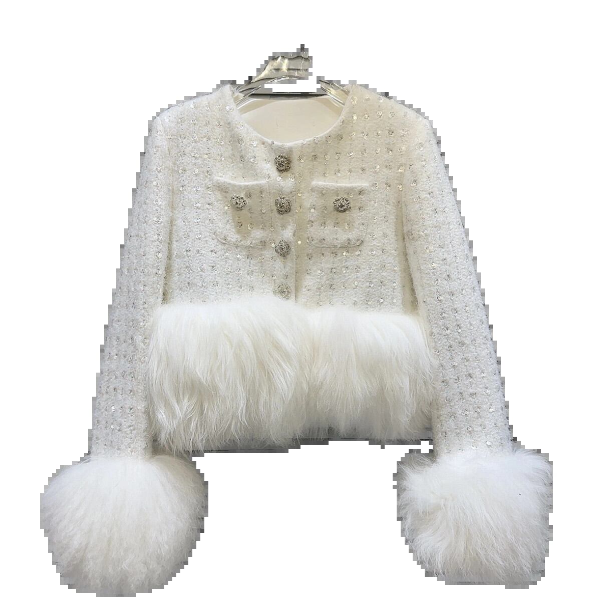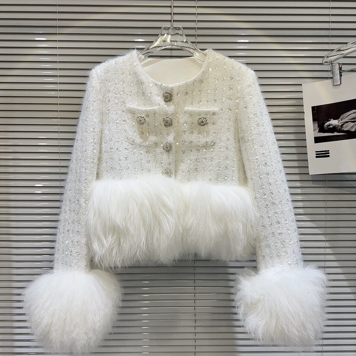 インターネット有名人の同じスタイル2023新しい冬スタイル小さな香りの良いラムズウール袖スパンコール付きミンクベルベットキルティングショートジャケットトップ ウィンター 冬物 gyan3355104932218 | vestitialla