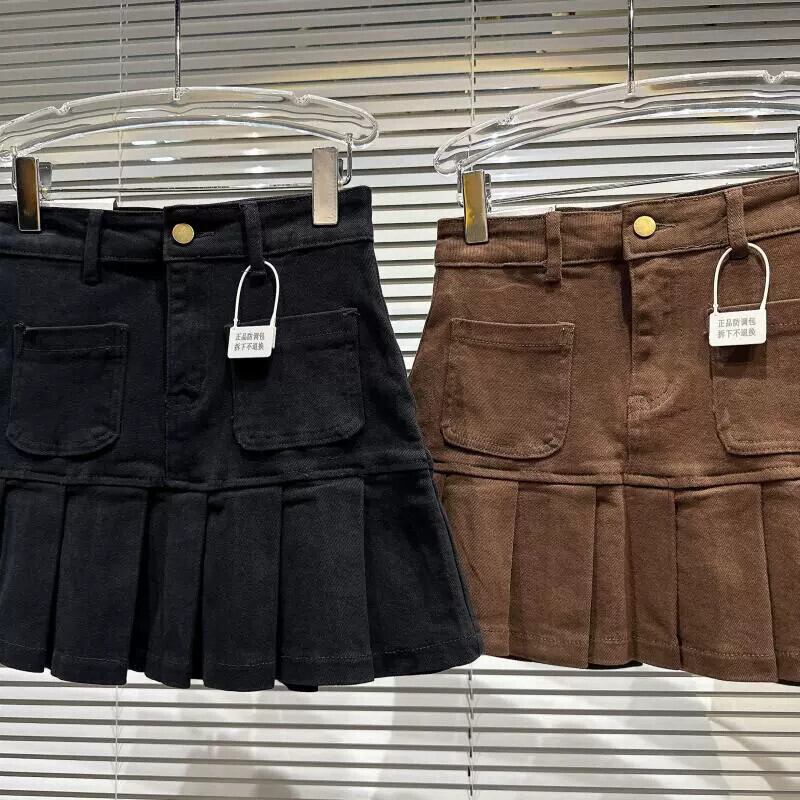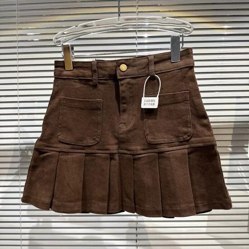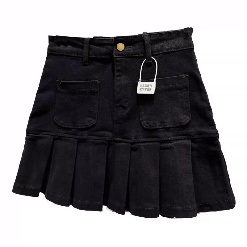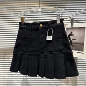 ネット有名人の同じスタイル2024春の新スタイル小さな香りの良いダブルポケットプリーツスカートデニムコットンスカートショートスカート スプリング 春物 gyan3390783999038 | vestitialla