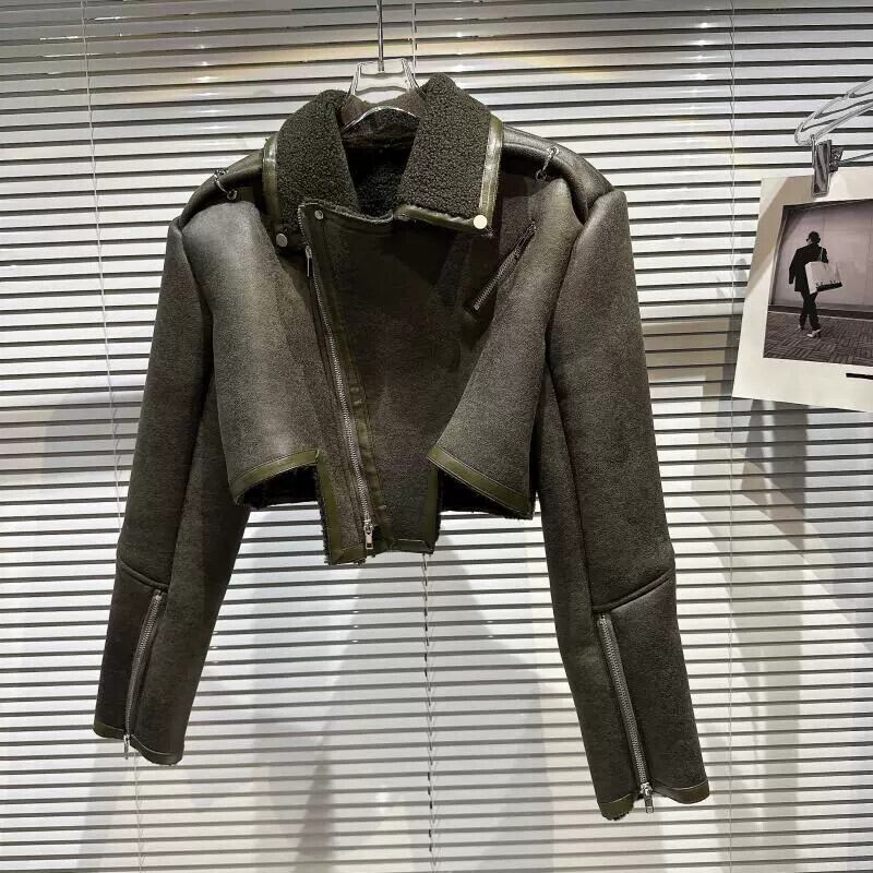 ネット有名人同スタイル2024冬新作ストリートスタイルバイクジッパースエードファーオールインワンレザージャケット スウェード ウィンター 冬物 gyan3390530095680 | vestitialla