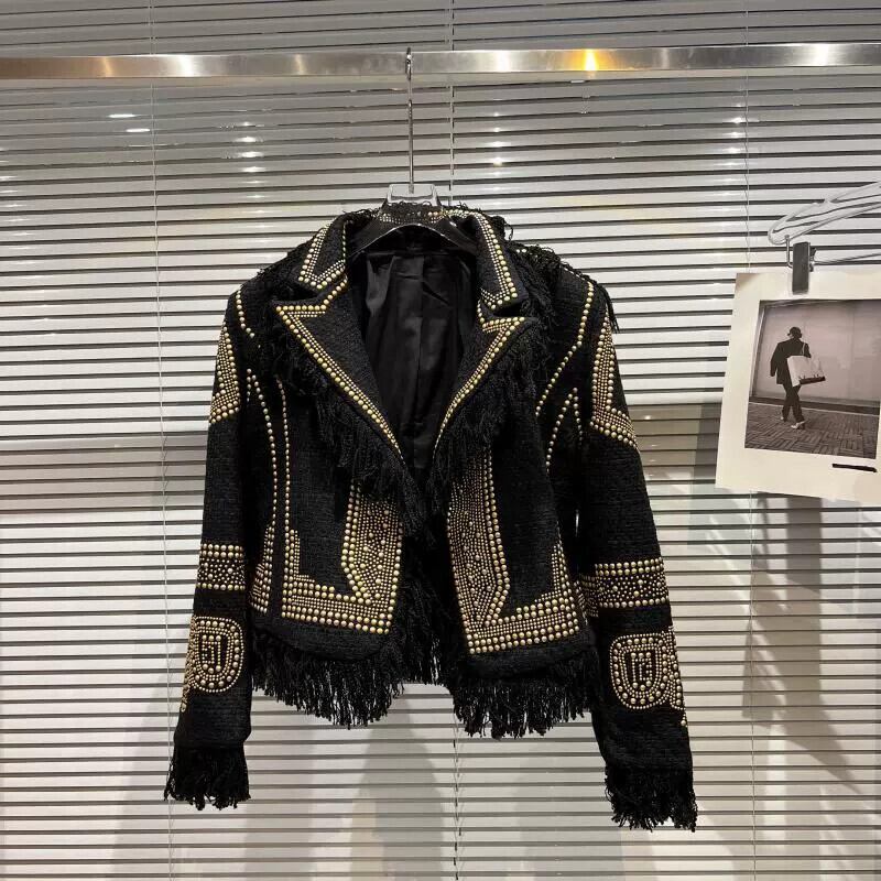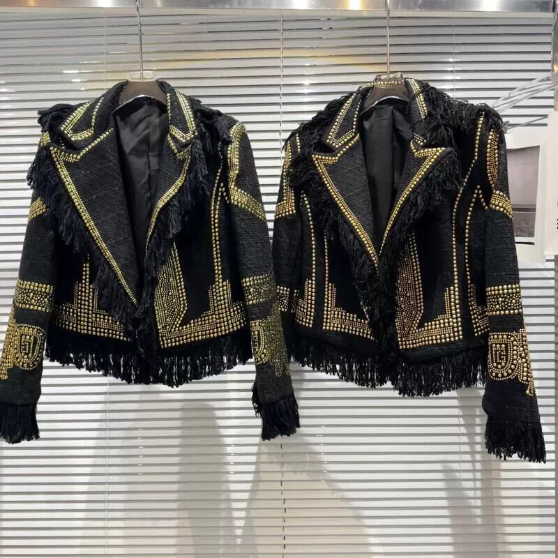 インターネット有名人同じスタイル 2024 春の新スタイル小さな香りのスタイルマット金属リベット生端ウールショルダーパッドスーツスーツ女性 スプリング 春物 gyan3375260833487 | vestitialla