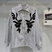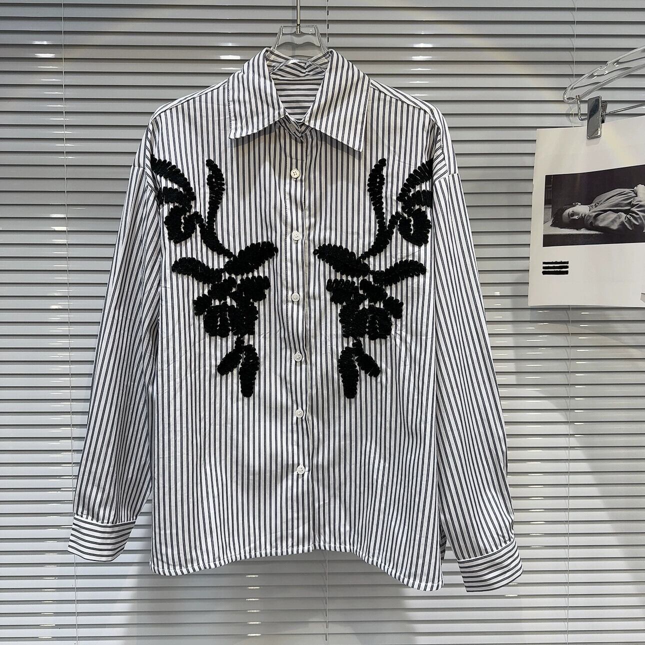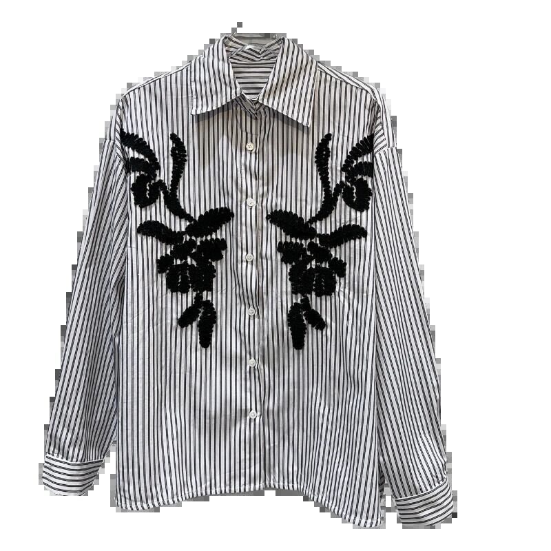 インターネットセレブと同じスタイル2024春の新しいニッチスタイル芸術的な刺繍デザイン縦縞カジュアルルーズシャツ スプリング 春物 ストライプ gyan3367658231110 | vestitialla