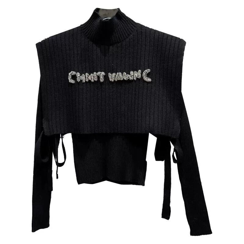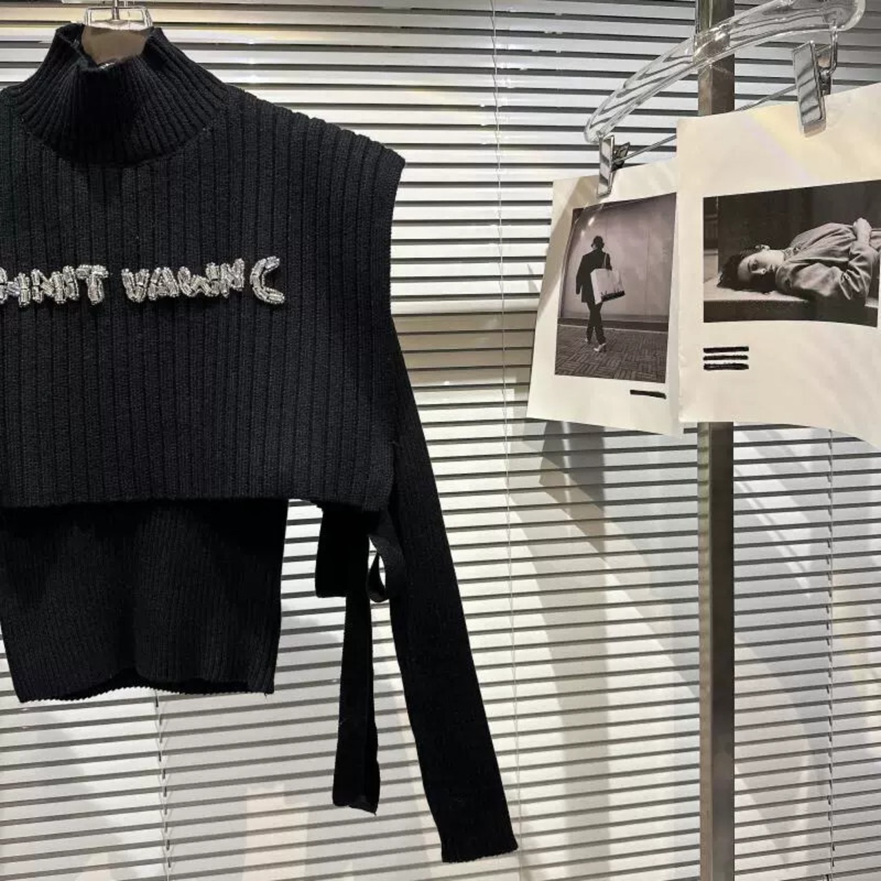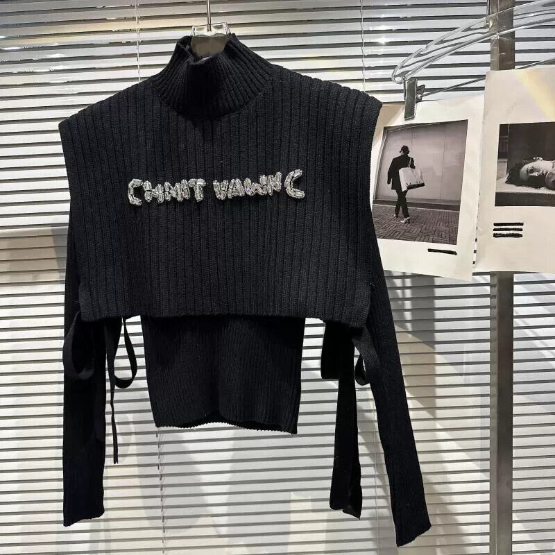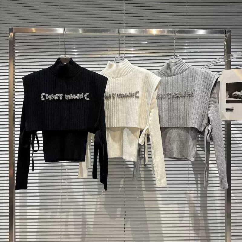 ネット有名人の同じ2024秋の新しいスタイルの小さな香りの良いラインストーンの文字刺繍ニットショールセーターツーピーススーツ レッド オータム 秋物 gyan3329890334653 | vestitialla