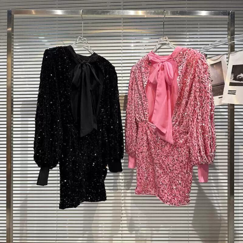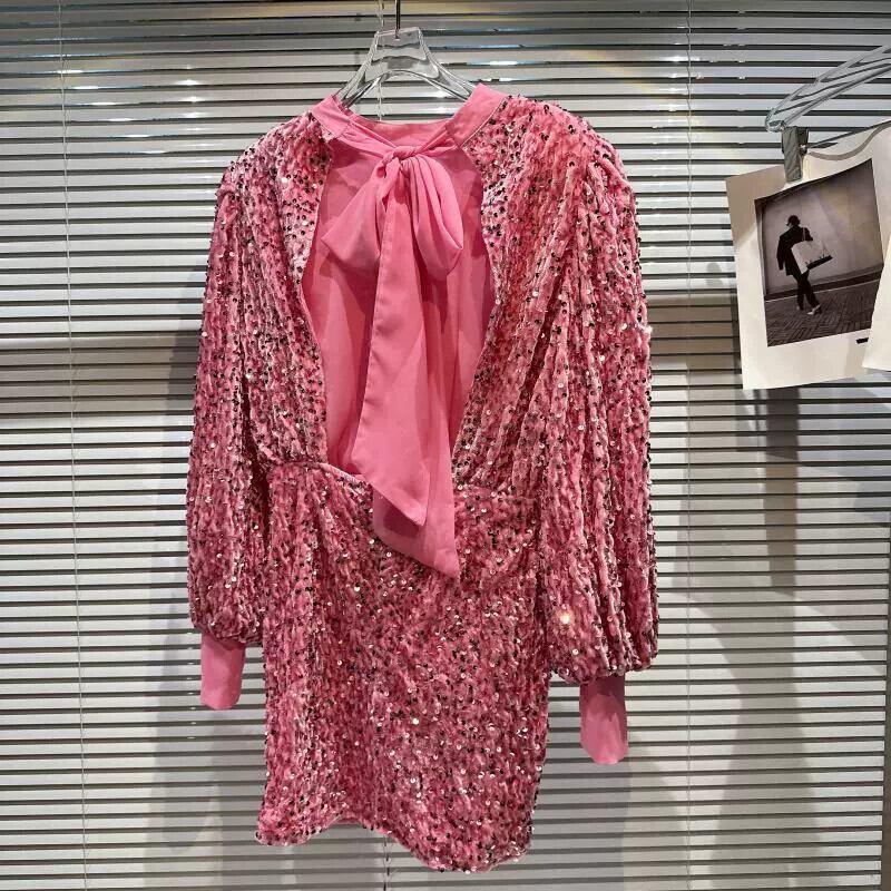 インターネット有名人の同じスタイル2024秋の新しいニッチフルボディスパンコールバックレスストラッププルオーバーネジスリーブドレス オータム 秋物 gyan3396545224778 | vestitialla