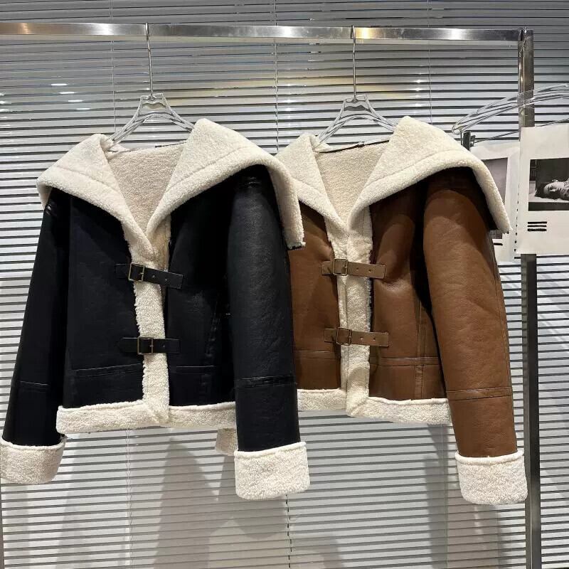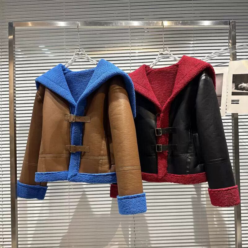 ネット有名人の同じスタイル2024冬新スタイル小さな香りの良いネイビーカラージッパーファーワンピースレザージャケットトレンディなジャケット ウィンター 冬物 gyan3364499820796 | vestitialla