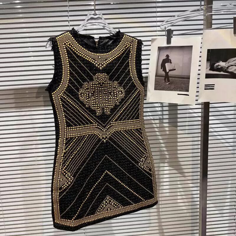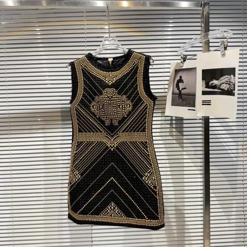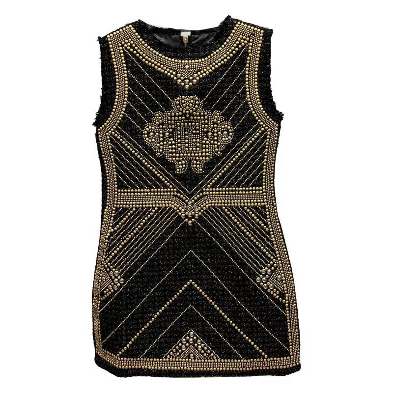 インターネット有名人の同じスタイル 2024 春の新重工業宮殿金属マットリベットウエストを締めるエレガントな女性のドレスの女性 レース スプリング 春物 gyan3340930361503 | vestitialla