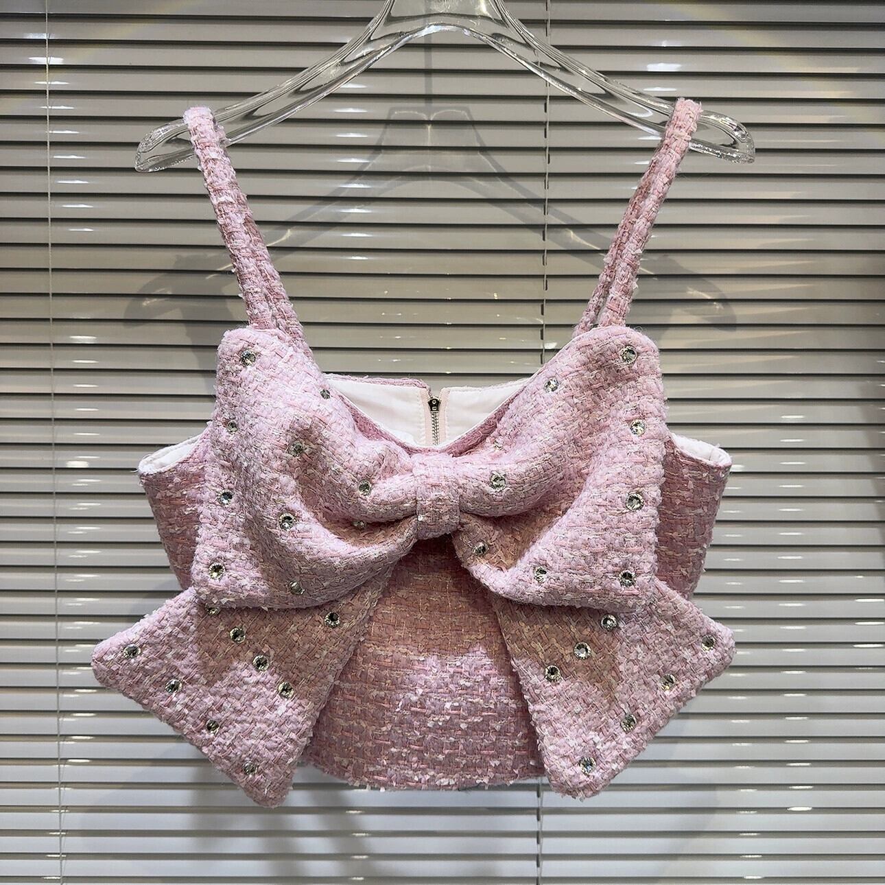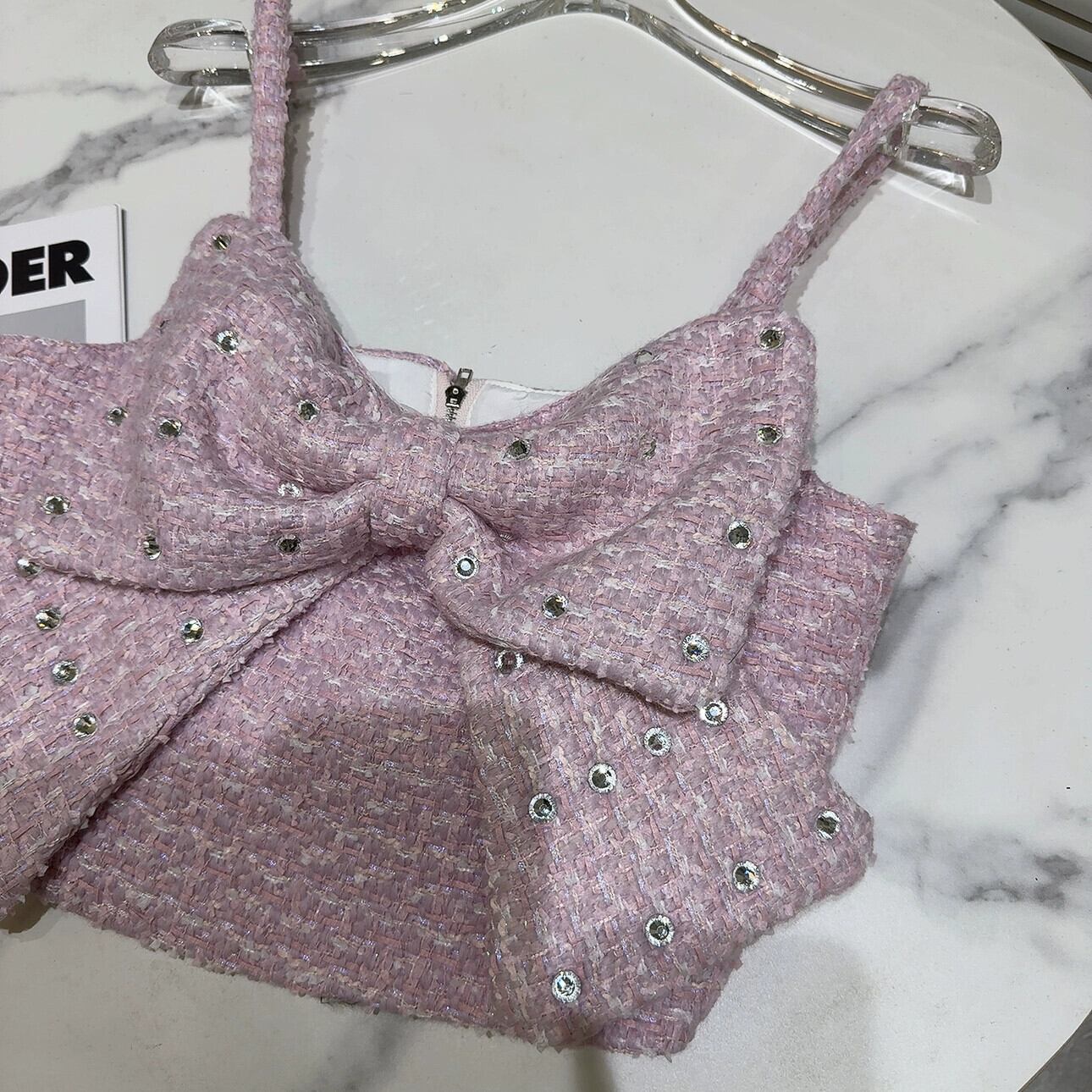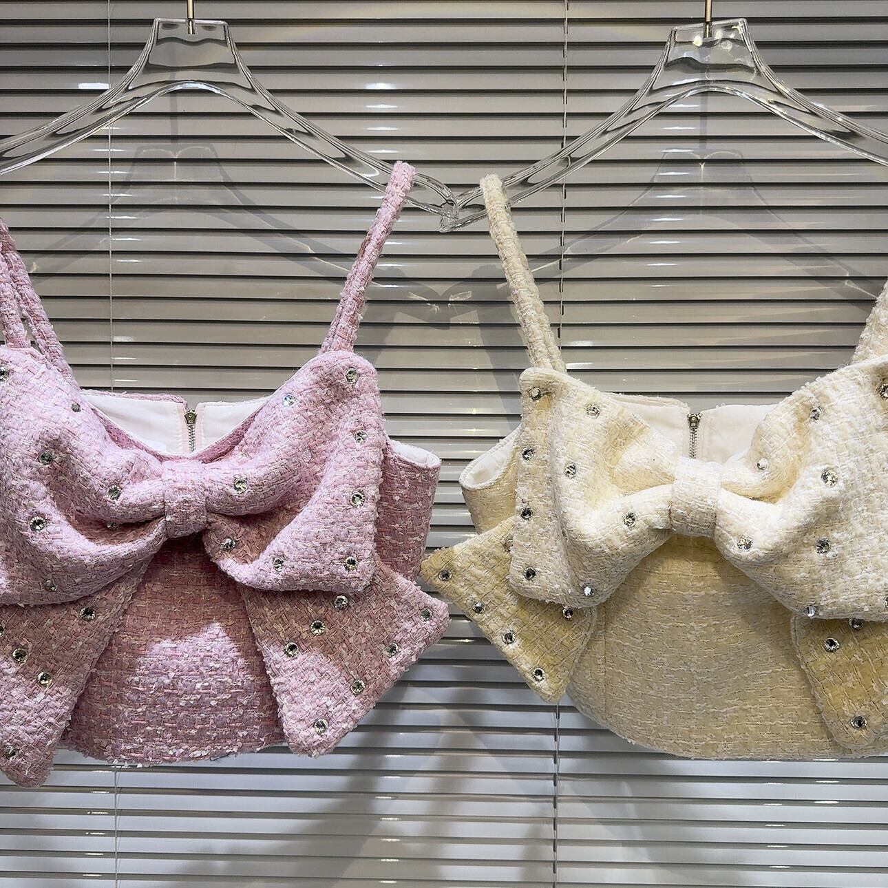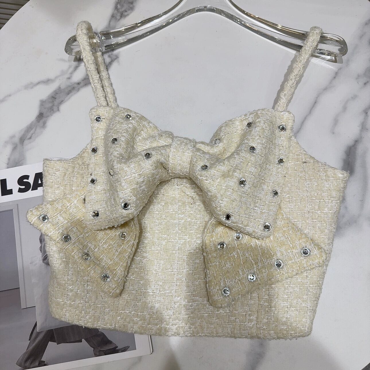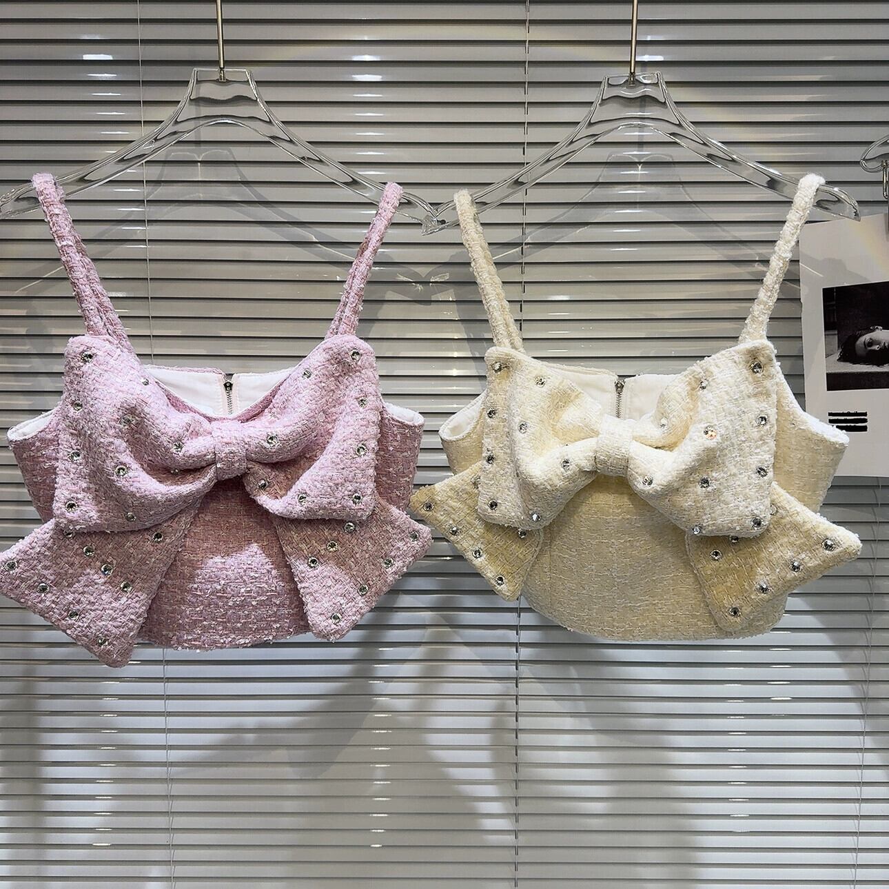 インターネットセレブと同じスタイル 2024 春の新スタイル小さな香りのスタイル粒子ラインストーンダイヤモンドリボンツイードキャミソール女性 スプリング 春物 gyan3362390908050 | vestitialla
