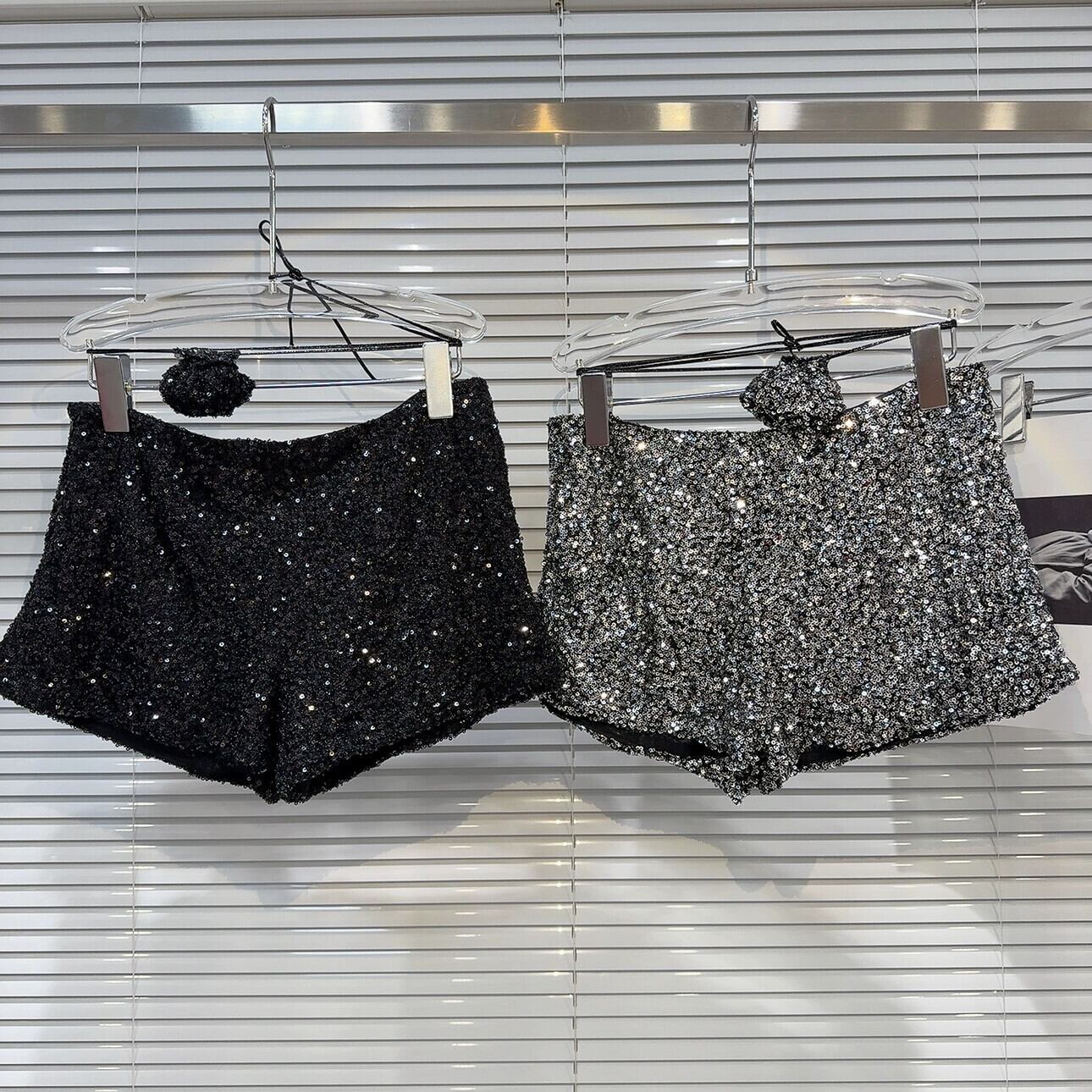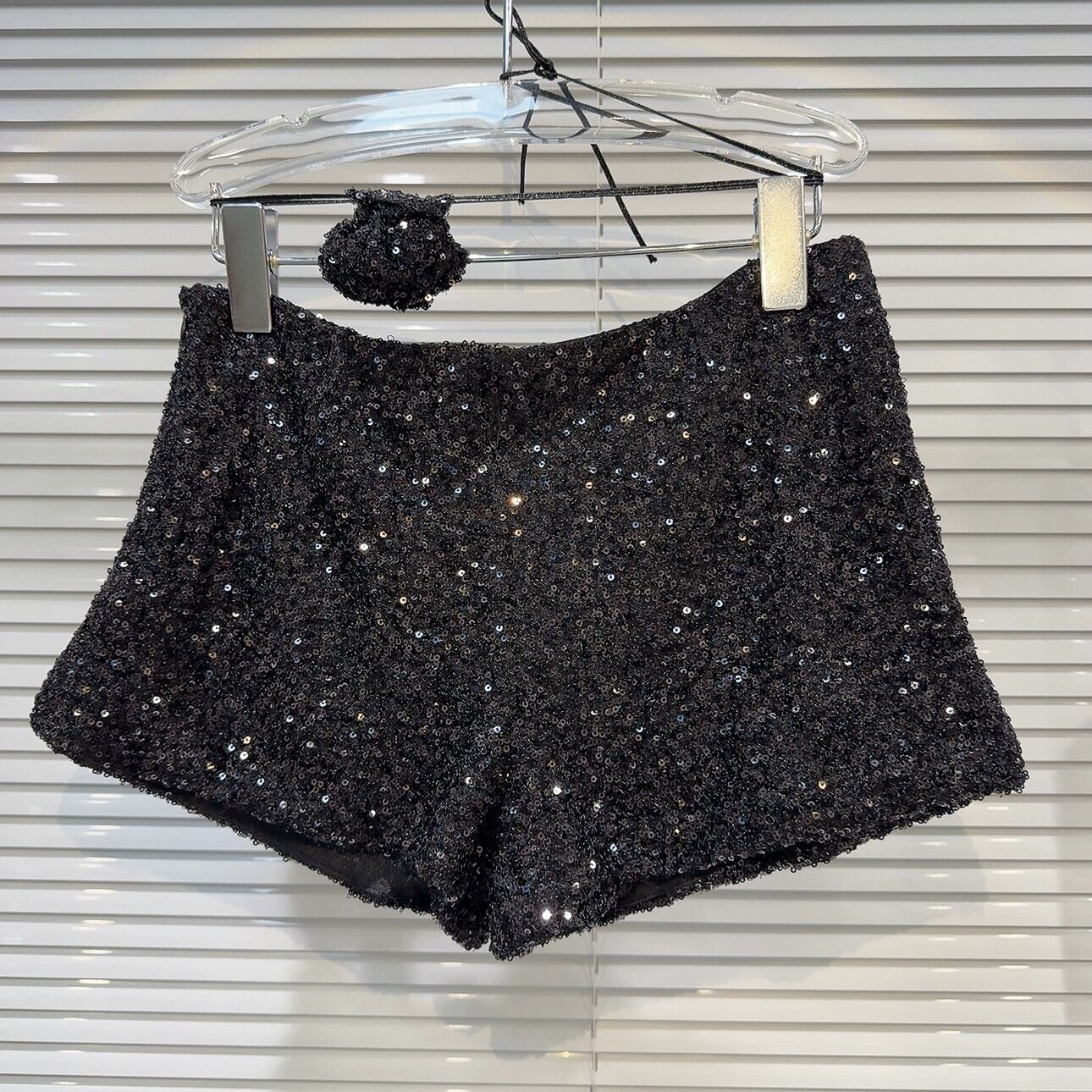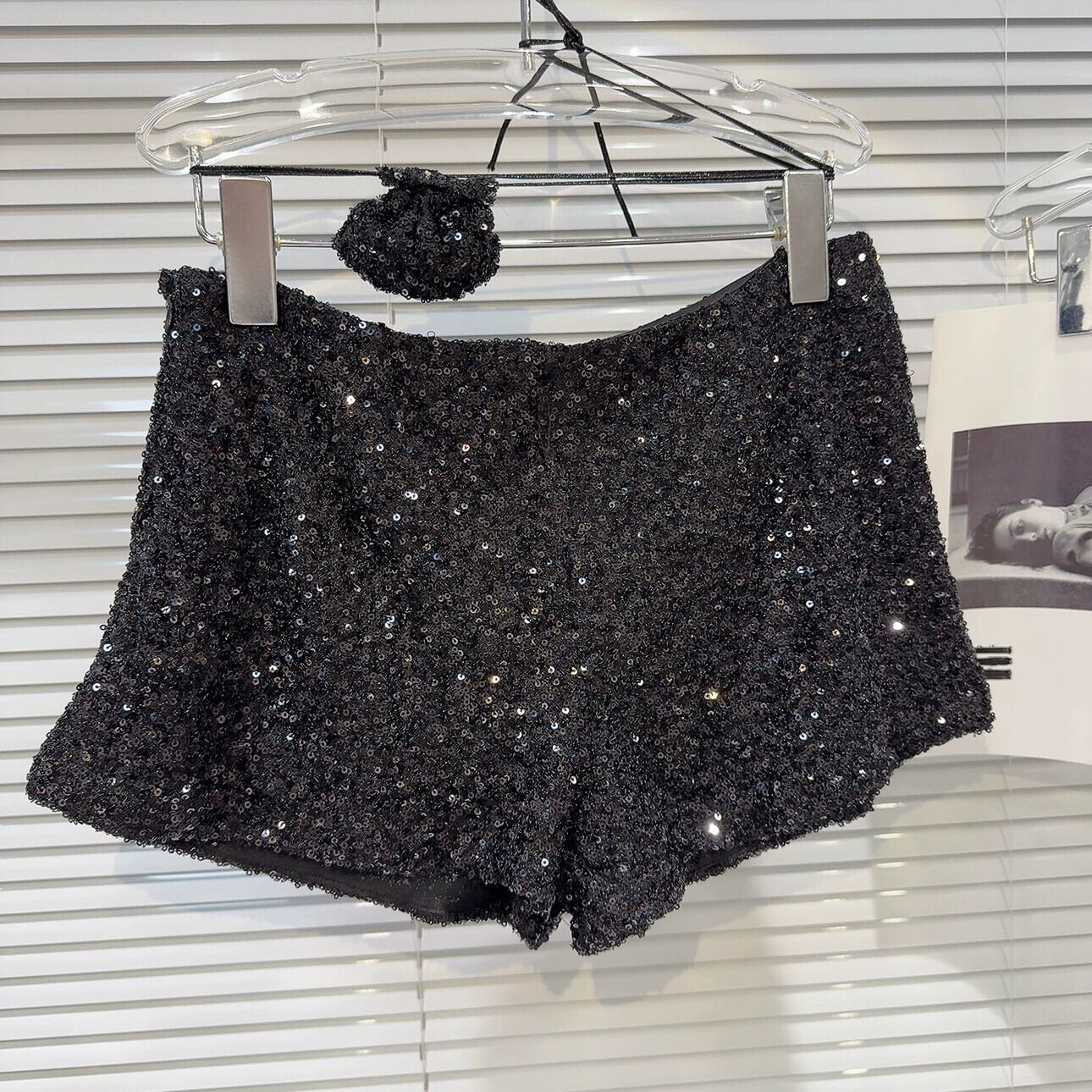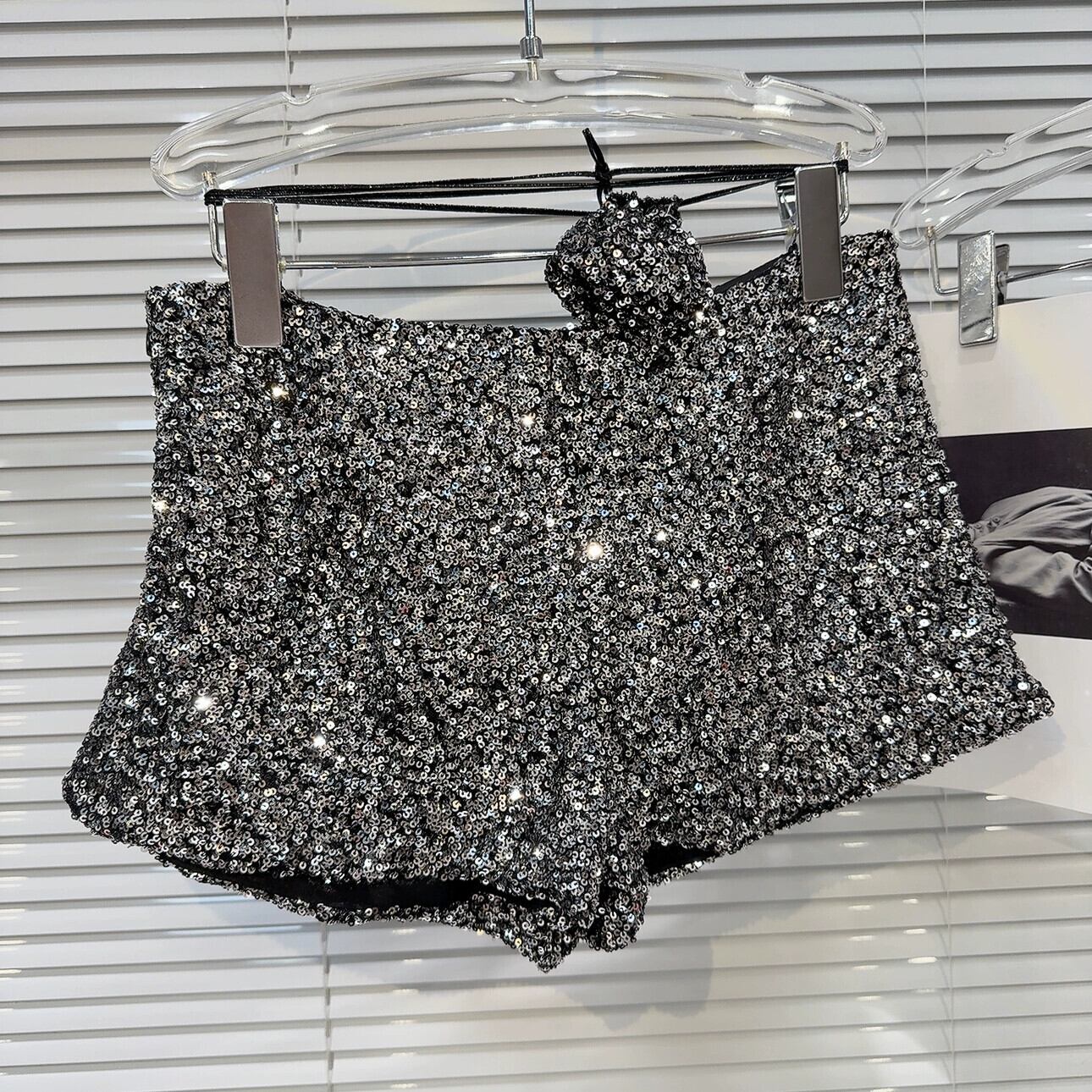 インターネットセレブと同じスタイル 2024 春夏の新しいキャットウォークダーク立体フラワーストラップウエストスパンコール重工業ショーツ女性 スプリング 春物 サマー 夏物 ブルマー フラワーデザイン gyan3397786328890 | vestitialla