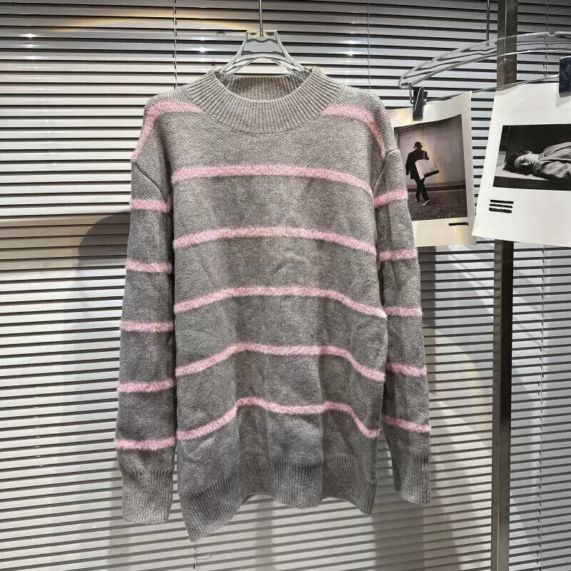 インターネット有名人の同じスタイル 2024 春の新ニッチモデルラウンドネックコントラストストライプ気質レディースニットセーターセーター女性 スプリング 春物 Oネック gyan3396809282619 | vestitialla