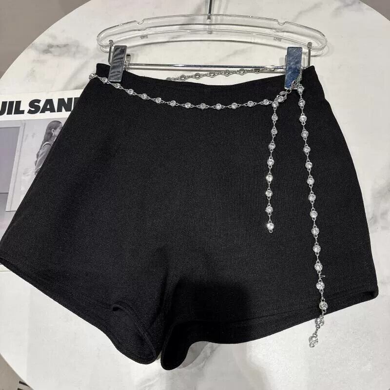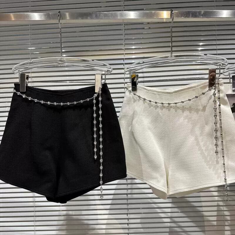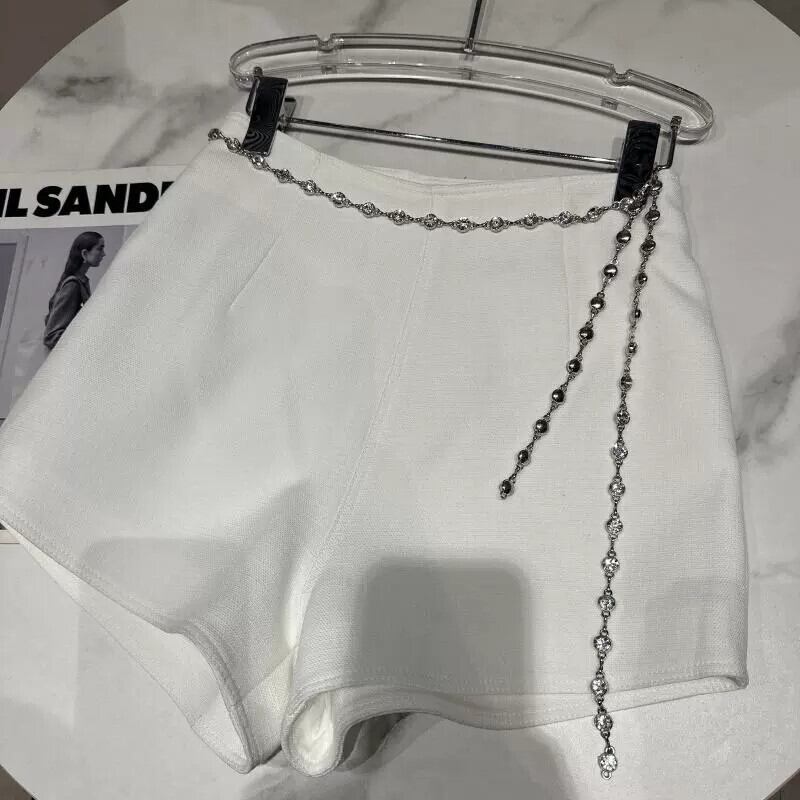 インターネット有名人の同じスタイル2024春の新しいスタイルの小さな香りのスタイルのメタルウエストチェーンエレガントな女性の綿と麻の3点ソリッドカラーショーツ コットン スプリング 春物 ブルマー gyan334665339516 | vestitialla