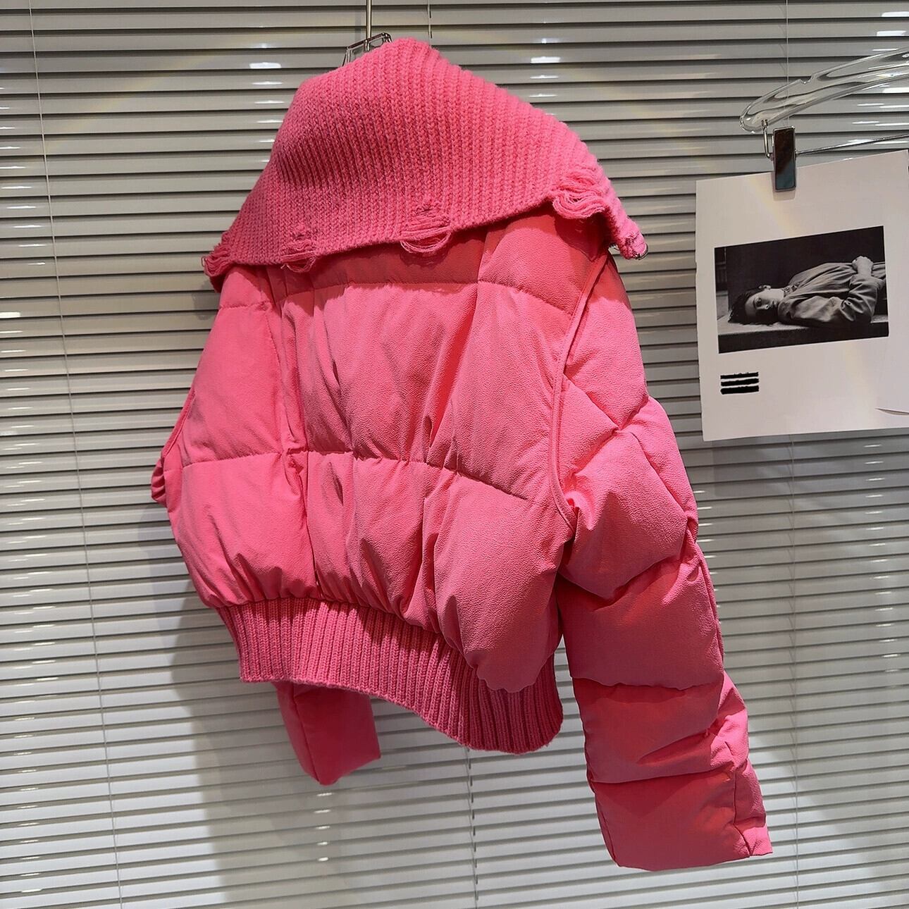 インターネット有名人の同じスタイル 2024 冬の新しいニッチスタイルニット襟ダブルジッパーデザイン暖かいダウンジャケット女性 ウィンター 冬物 gyan3351435443655 | vestitialla